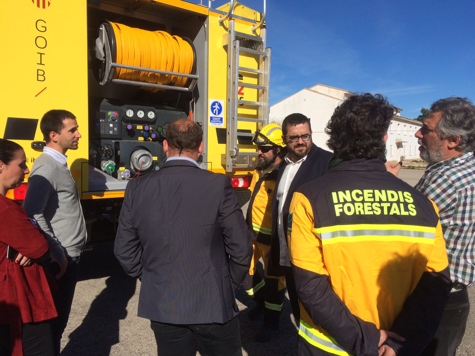 @B.R./ El conseller balear de Medi Ambient, Vicenç Vidal, ha presentado hoy la nueva autobomba, que estará a disposición de los agentes del Ibanat de Ibiza, para la lucha contra los incendios forestales.