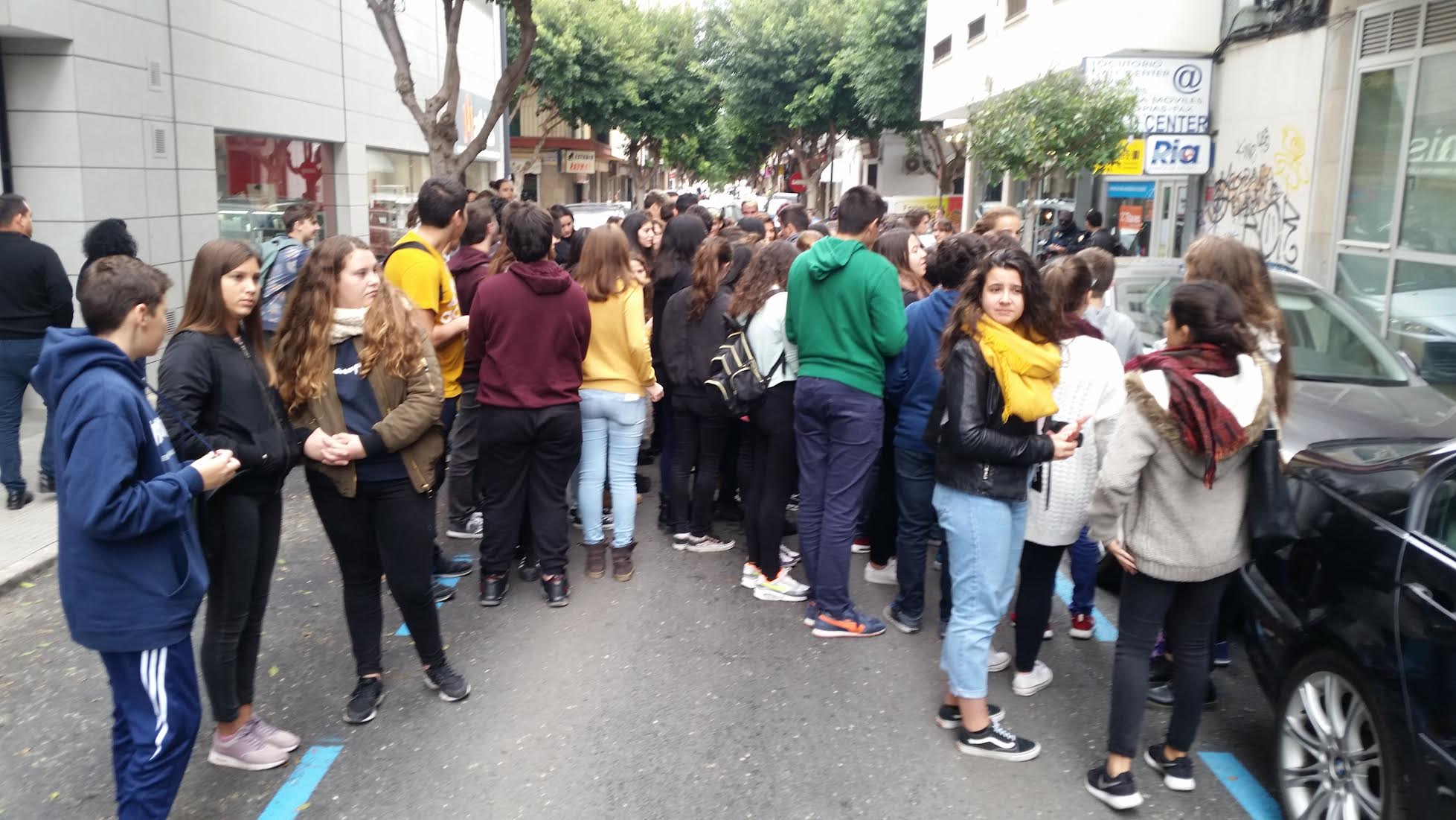Los alumnos, que a diferencia del pasado 26 de octubre sí tenían permiso para convocar la huelga, han sido escoltados por la Policía Local de Vila en un recorrido que han empezado en la antigua plaza de Sa Graduada y han finalizado frente a la delegación territorial de Educación, en  Vía Púnica.