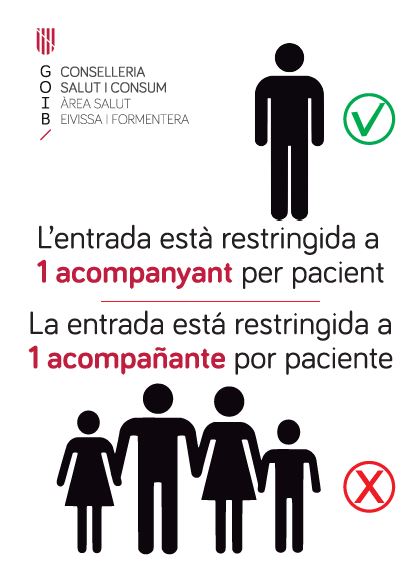 Esta medida de restricción de acompañantes de pacientes, también afecta a partir de hoy a los centros de salud locales y se pide que solo una persona acompañe al paciente a las visitas médicas.