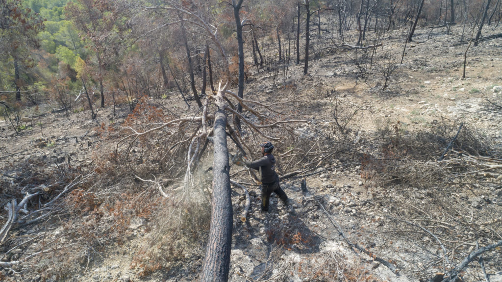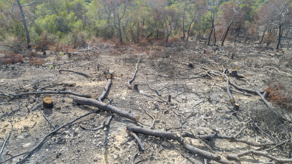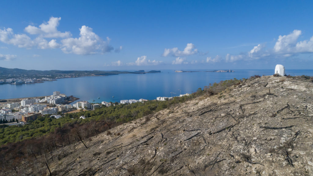 NouDiari / El Ayuntamiento de Sant Antoni y la Conselleria de Medi Ambient del Govern balear han iniciado los trabajos de restauración y prevención forestal de la zona afectada por el último incendio en sa Talaia del pasado 22 de agosto de 2020.