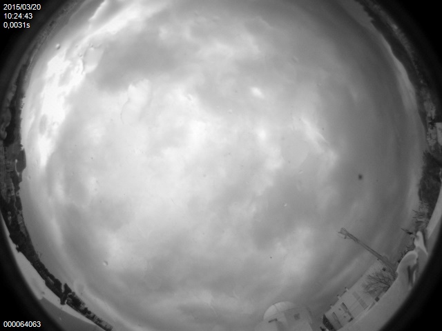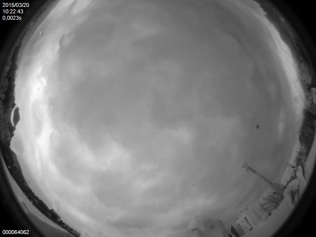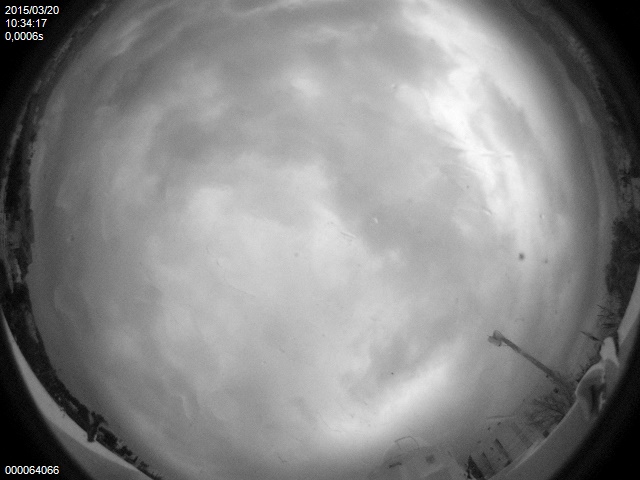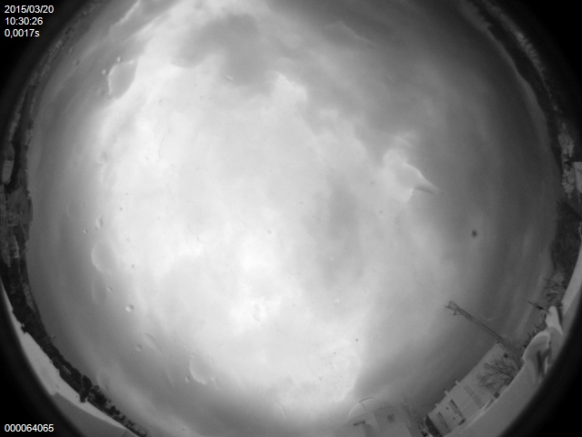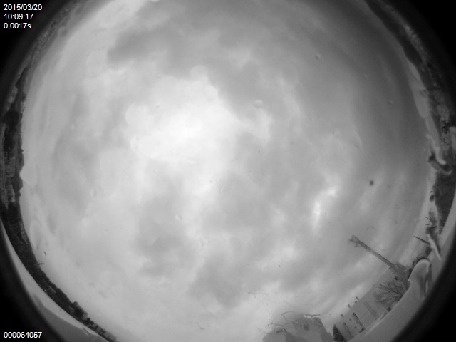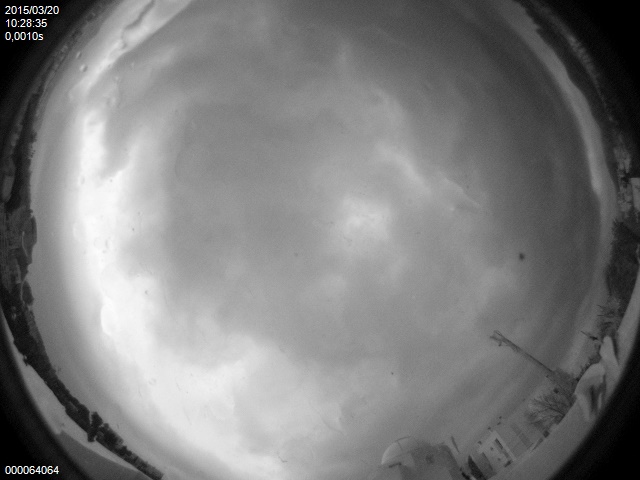 La cámara «All Sky» de la asociación astronómica ubicada en el Observatorio de Puig des Molins capta casi en tiempo real los diferentes estados del cielo de Eivissa, durante todo el día y toda la noche. Estas son las imágenes tomadas entre las 9,57 y las 10,34 horas, es decir, minutos antes y después de las 10,11 horas, el momento máximo del eclipse de sol.