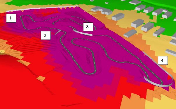 Según el proyecto al que ha tenido acceso Nou Diari, existen dos zonas con viviendas en las que la exposición de ruido en fachada superaría ligeramente el máximo permitido durante una carrera con 40 motos. Sin embargo, las medidas correctoras previstas en el proyecto evitan este escenario, uno de los más sensibles para lograr el visto bueno de la Comisión de Medio Ambiente de les Illes Balears (Cmaib).