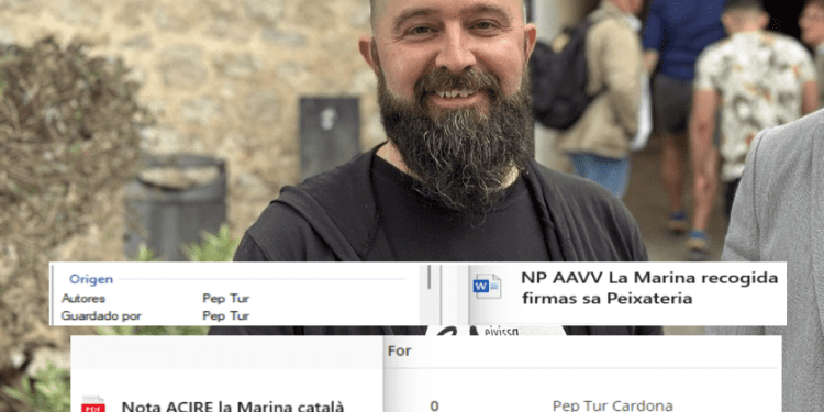 Así, el pasado 25 de enero, esta entidad mandó un comunicado titulado «Els veïns de la Marina proposen a Vila que faci un centre polivalent en Sa Pedrera i recuperi el mercat a Sa Peixateria» que fue redactado en el ordenador de Pep Tur el mismo día 25 a las dos de la tarde. Antes, el 12 de julio de 2023, dos meses después de la derrota del PSOE y cinco meses antes de que Pep Tur entrase como vocal en la entidad, esta asociación de vecinos mandó ya otro comunicado criticando el cambio en los accesos a Dalt Vila. En este caso, se trataba de un pdf redactado por “Pep Tur Cardona” el mismo día en el que se mandó a los medios de comunicación. Y en octubre del año pasado esta entidad mandó otro comunicado redactado desde el ordenador de Tur en el que se felicitaba por el aniversario del Mercat Vell pero apremiaba al Consistorio de Triguero a “no pararse en la celebración” y tomar más medidas para el barrio.