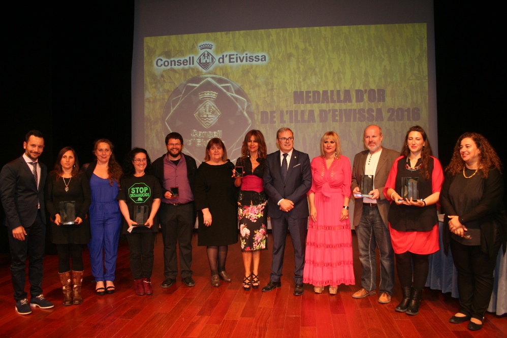 Los premiados en esta edición han sido Elisa Pomar y l’Agrupació Cultural de Sant Miquel de Balansat con la Medalla de Oro, mientras que el Premio al Mérito Ciudadano ha recaído en la Alianza Mar Blava, la Plataforma de Afectados por la Hipoteca (PAH) de Eivissa, que recogió el galardón al grito de ‘Sí, se puede’, l’Associació Vuit d’Agost y l’Associació de Dones Progressistes d’Eivissa.
