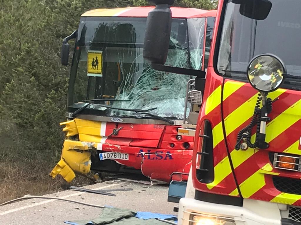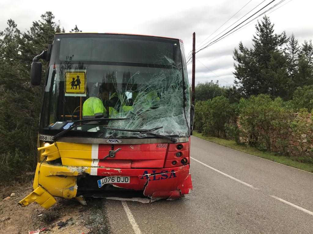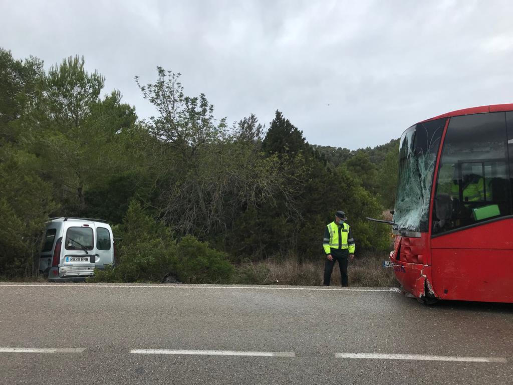L.F.A / N.C / Un autobús escolar y una furgoneta han sufrido una colisión frontal esta mañana, a las 08.31 horas, en el camino Davall sa Serra, vial de la carretera de es Cubells, en Sant Josep.