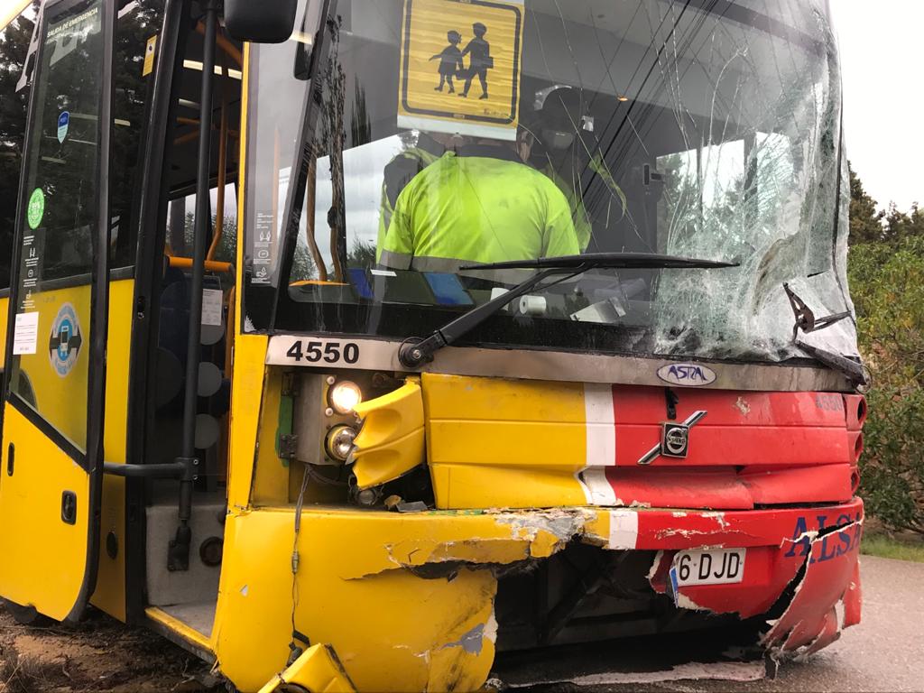 La conductora del autobús, una mujer de 28, ha sufrido un traumatismo craneoencefálico a consecuencia del choque, con esguince cervical, con lo que le han puesto un collarín in situ y la han trasladado.