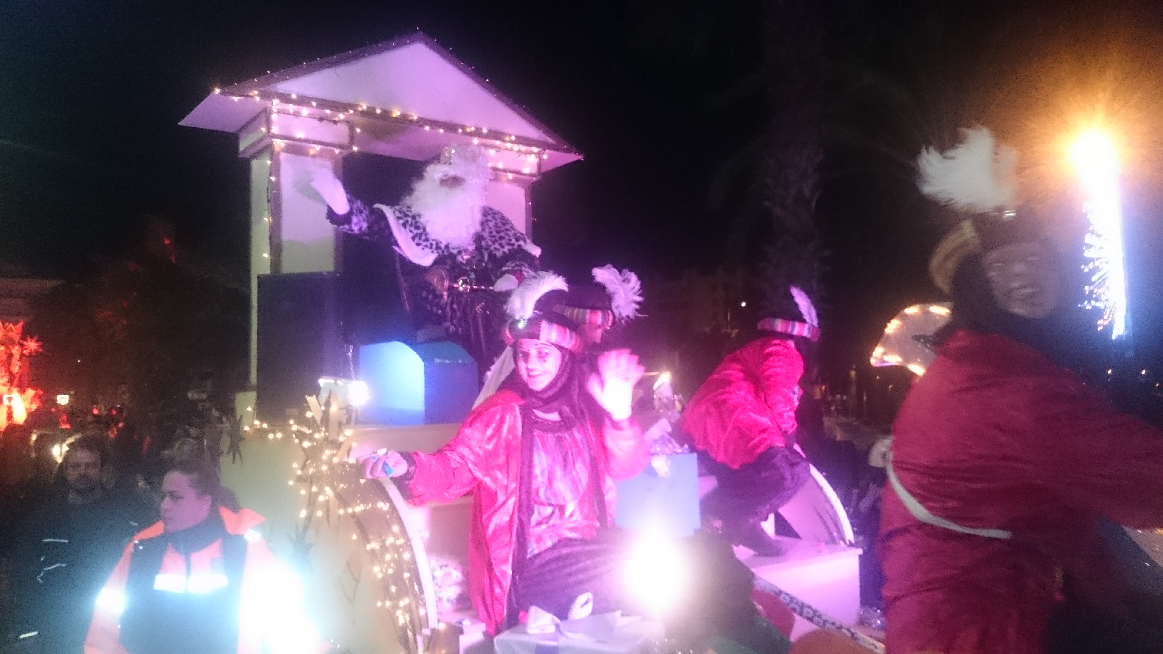 @Noudiari / Melchor, Gaspar y Baltasar llegaron hoy puntuales a su cita con los niños de Sant Antoni, aunque para lograrlo tuvieron que hacer un pequeño cambio de logística. Debido al fuerte viento, los Reyes Magos de Oriente tuvieron que dejar atrás su intención de llegar surcando las aguas de la bahía de Portmany, y debieron hacerlo en autobús. Un transporte más seguro ante la climatología adversa que soplaba en el frente marítimo de Sant Antoni, que aún así no empañó la cabalgata a la que asistieron cientos de niños y sus familias.