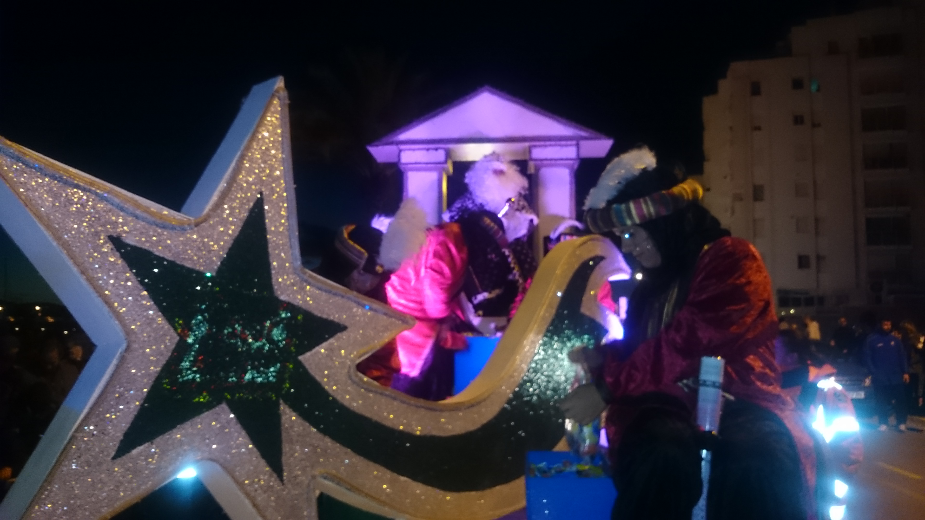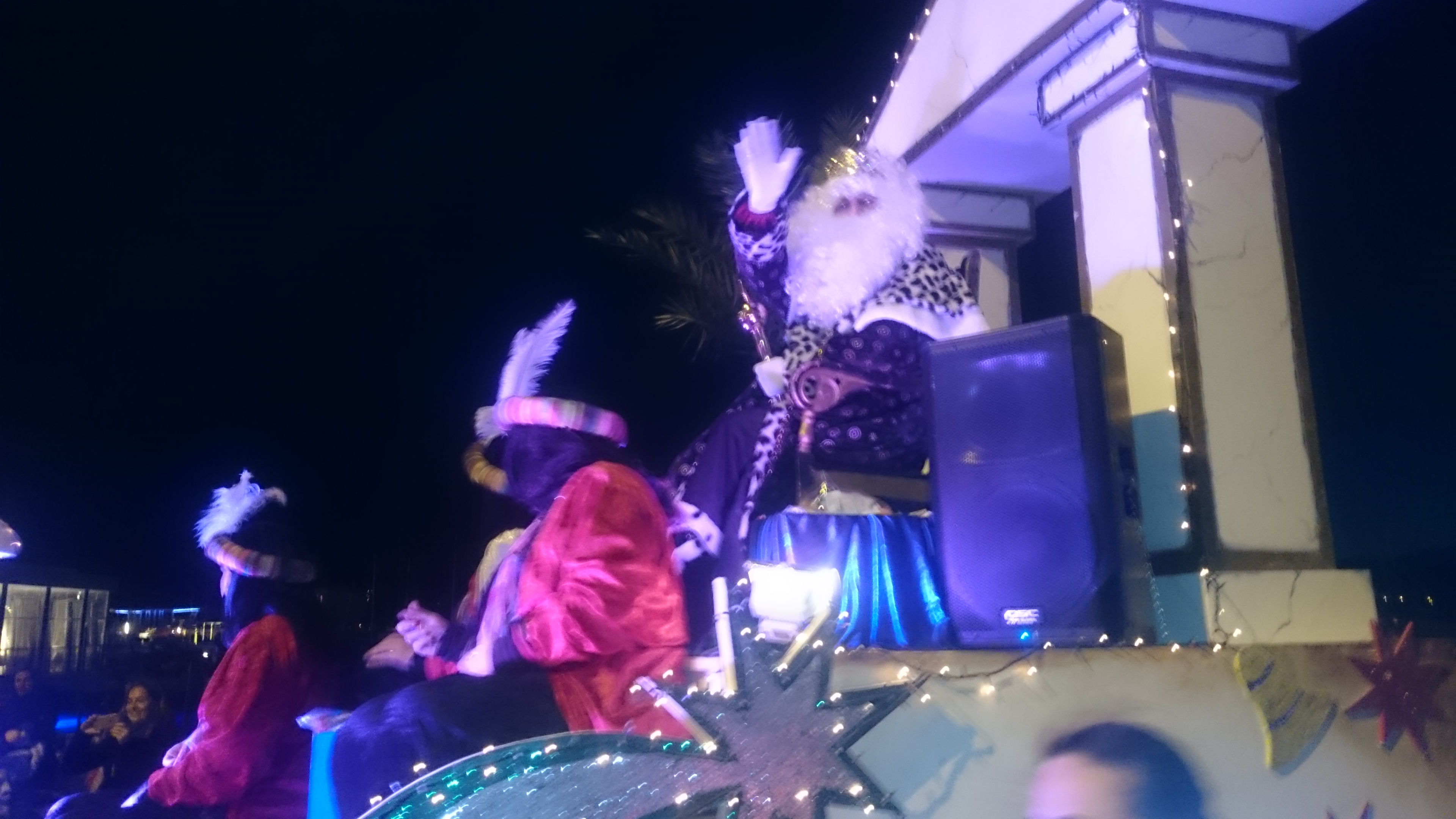 @Noudiari / Melchor, Gaspar y Baltasar llegaron hoy puntuales a su cita con los niños de Sant Antoni, aunque para lograrlo tuvieron que hacer un pequeño cambio de logística. Debido al fuerte viento, los Reyes Magos de Oriente tuvieron que dejar atrás su intención de llegar surcando las aguas de la bahía de Portmany, y debieron hacerlo en autobús. Un transporte más seguro ante la climatología adversa que soplaba en el frente marítimo de Sant Antoni, que aún así no empañó la cabalgata a la que asistieron cientos de niños y sus familias.