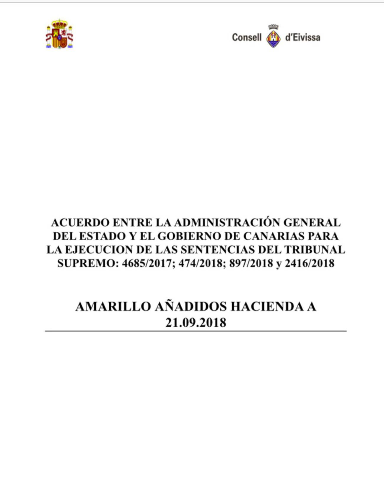 @Noudiari / El Gobierno de España ha confundido el escudo del Consell de Ibiza con el del Gobierno canario en la negociación del borrador con el que se pretende ejecutar extrajudicialmente la sentencia del Tribunal Supremo que condena al Estado a abonar a Canarias los 865 millones de euros adeudados por los convenios de carreteras de 2012 a 2016, según ha informado la cadena SER en su página web.