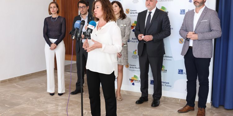 Después de la reunión, la presidenta ha dicho: «hace tiempo que apostamos por la calidad y no por la cantidad» en el modelo turístico balear y que «la nueva ley turística nos obliga a hacer una reducción progresiva de plazas».