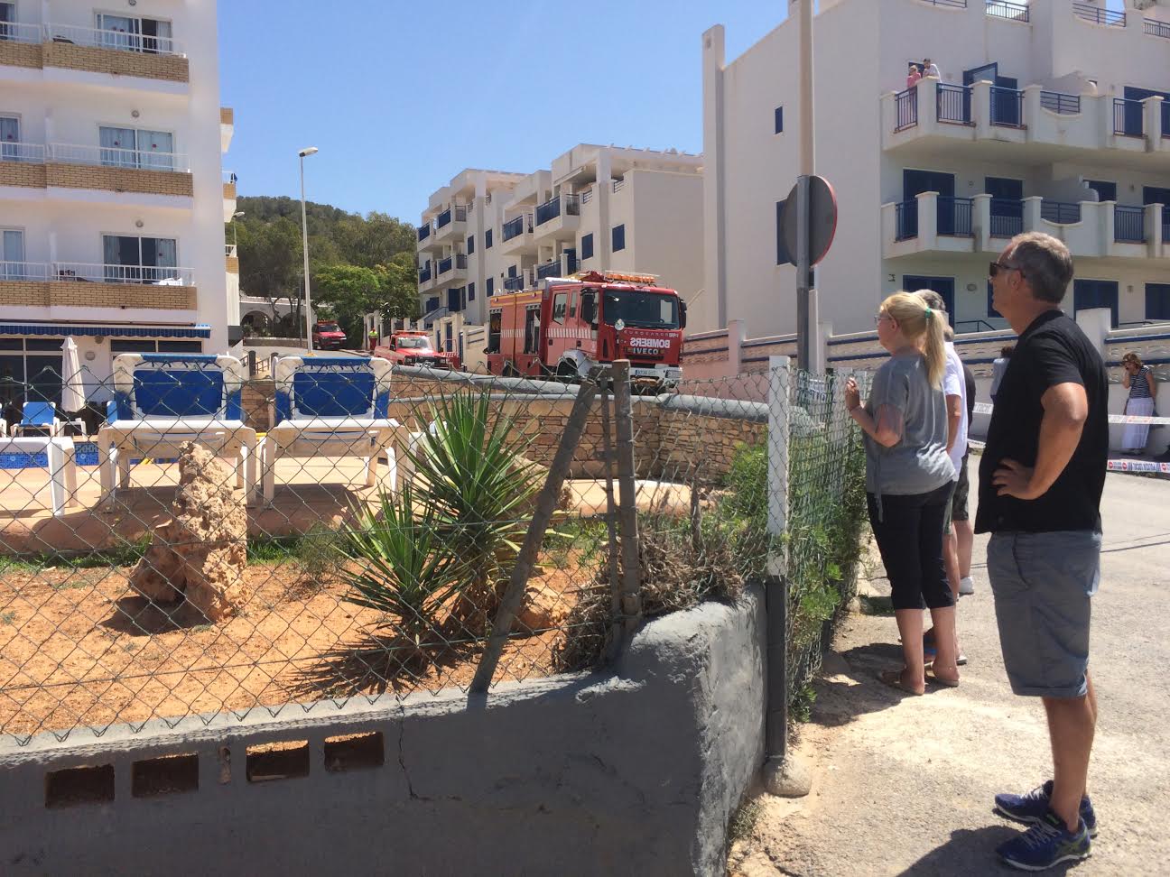 Mientras los bomberos siguen trabajando y la zona se encuentra acordonada para evitar el paso de vehículos y viandantes, algunos de los turistas que ayer se encontraban alojados en el Sol Bahía se acercan para observar cómo está la situación. «No sabemos qué hacer», relata una pareja alemana que ayer fue alertada a las 03,00 de la madrugada del incendio que se originó en la planta baja. Y no saben que hacer porque a ellos aún les resta más de una semana de vacaciones. Aseguran que ya han podido recoger lo necesario, como es la documentación y el dinero, pero apuntan que todo huele a humo. Algunos de los clientes del estableciemiento, medio centenar según el Ayuntamiento, se encuentran alojados en el Hotel Tanit y en otros hoteles cercanos a la zona.
