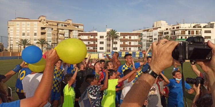Tras el pitido final, los futbolistas del Inter Ibiza se han fundido en un abrazo en el centro del terreno de juego, donde su entrenador no ha podido esquivar una abundante ducha de cava, incluso cuando atendía a los medios de comunicación. El campo era una fiesta total y absoluta.