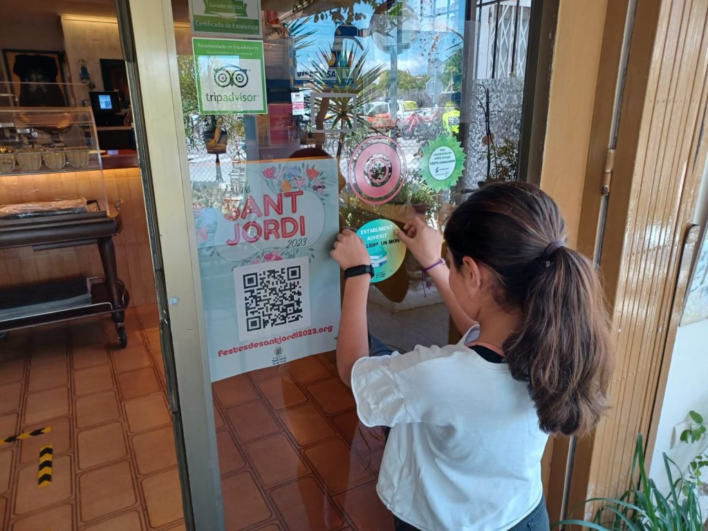 En Sant Josep, además, hoy los más jóvenes del municipio tenían otra misión: conseguir que los bares del municipio dispongan de libros en su interior para que ellos puedan leer mientras los adultos se divierten. Así, varios chicos y chicas han ido repartiendo pegatinas de «establecimiento colaborador» a los locales que se sumaban a su iniciativa. Dentro de estos locales, a partir de ahora, se podrá disfrutar de las obras que en los últimos días habían ido recogiendo estos jóvenes comprometidos con la lectura.