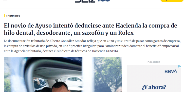 La compra de un reloj Rolex en Ibiza por 8.000 euros en noviembre de 2020 es uno de los gastos privados que presuntamente intentó colar como gastos de empresa ante Hacienda la pareja de la presidenta de la Comunidad de Madrid, Alberto González Amador, tal y como desvela hoy una investigación exclusiva de la Cadena Ser.