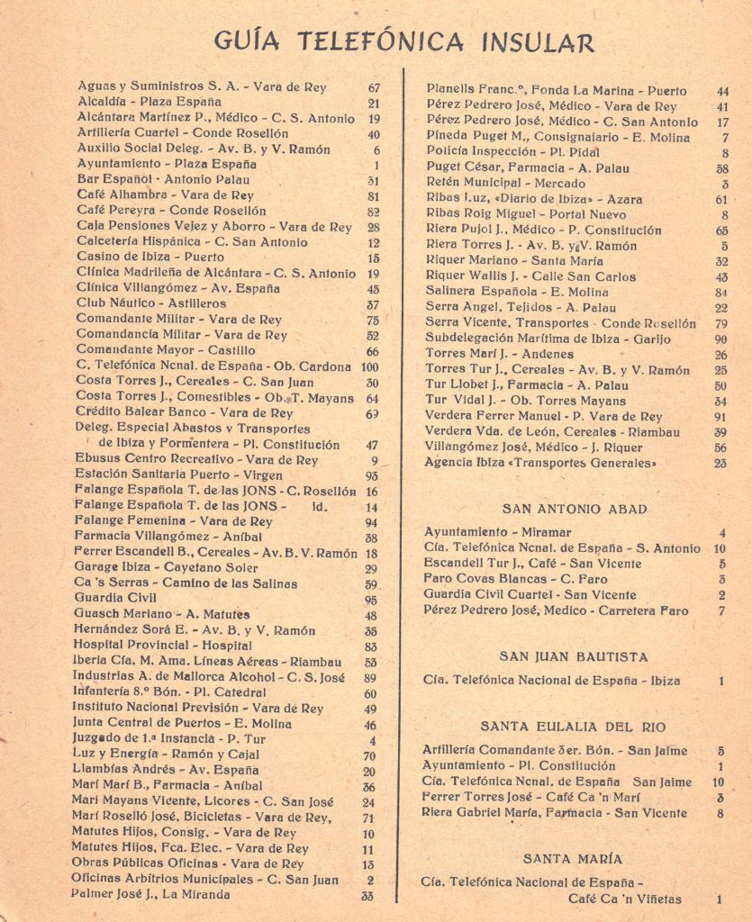 Coberta del primer numero d’El Pitiuso, de 1945, en què la guia telefònica d’Eivissa que hi apareix cap en una sola pàgina (col·lecció JAR).