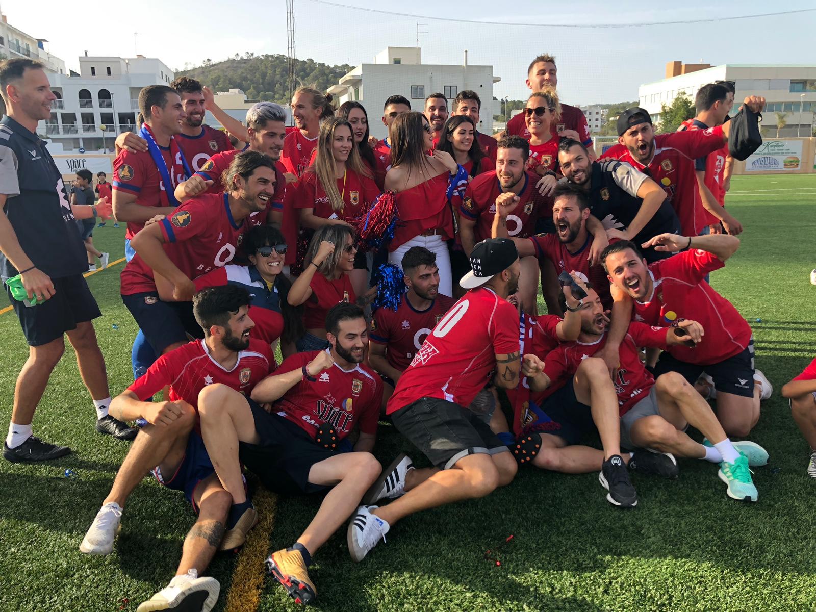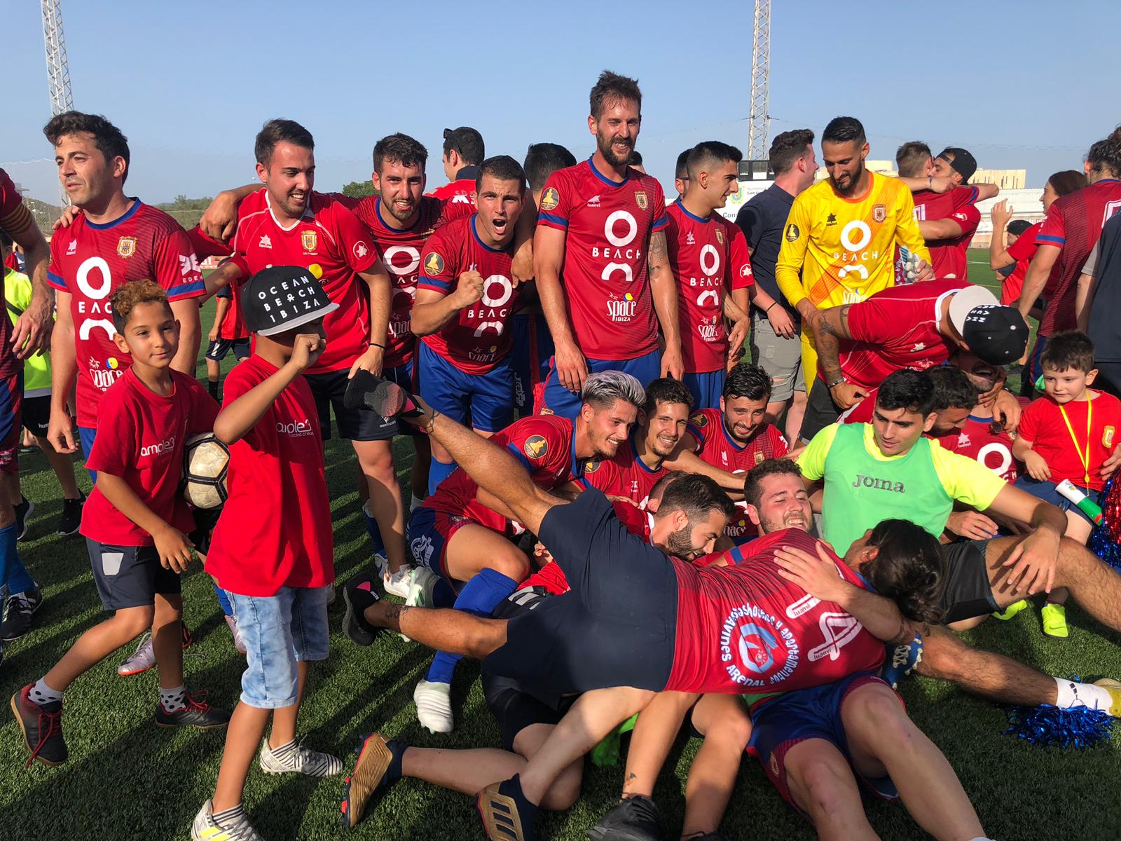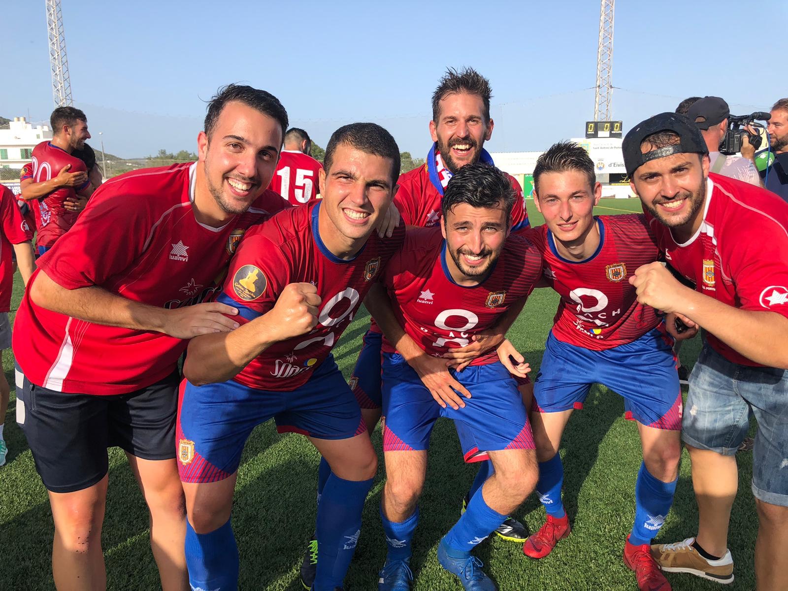Al final, estallido de júbilo en el campo y la grada del municipal de deportes de Sant Antoni, que el ejercicio que viene volverá a ver fútbol de Tercera División, la categoría que merece el pueblo y el club, un histórico que renace de sus cenizas tras una serie de años condenado al ostrascismo de la Regional Preferente Pitiusa.