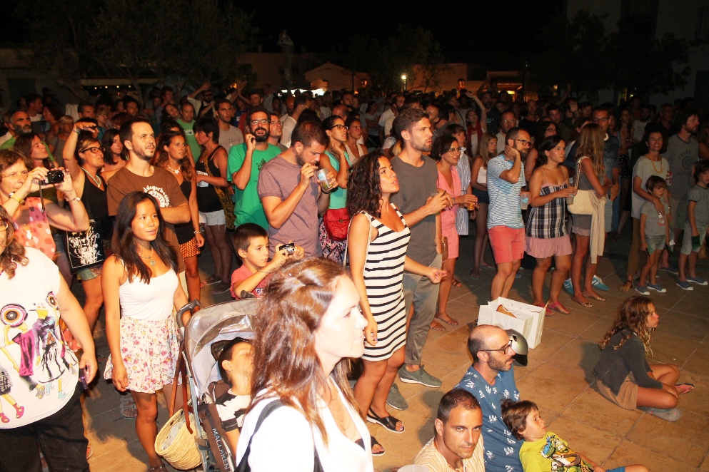 Con los tres grupos sobre el escenario de la Plaza de la Constitución de Sant Francesc, el rock and roll se enseñoreó de la plaza del pueblo, y fueron pocos los que echaron en falta los fuegos artificiales, suspendidos de forma más que acertada por el Consell Insular ante el riesgo de incendio.