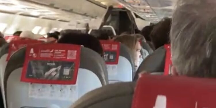 Interior de uno de los vuelos que sí ha salido pero en el que los pasajeros han pasado miedo por los vaivenes de las rachas de viento. Imagen Noudiari