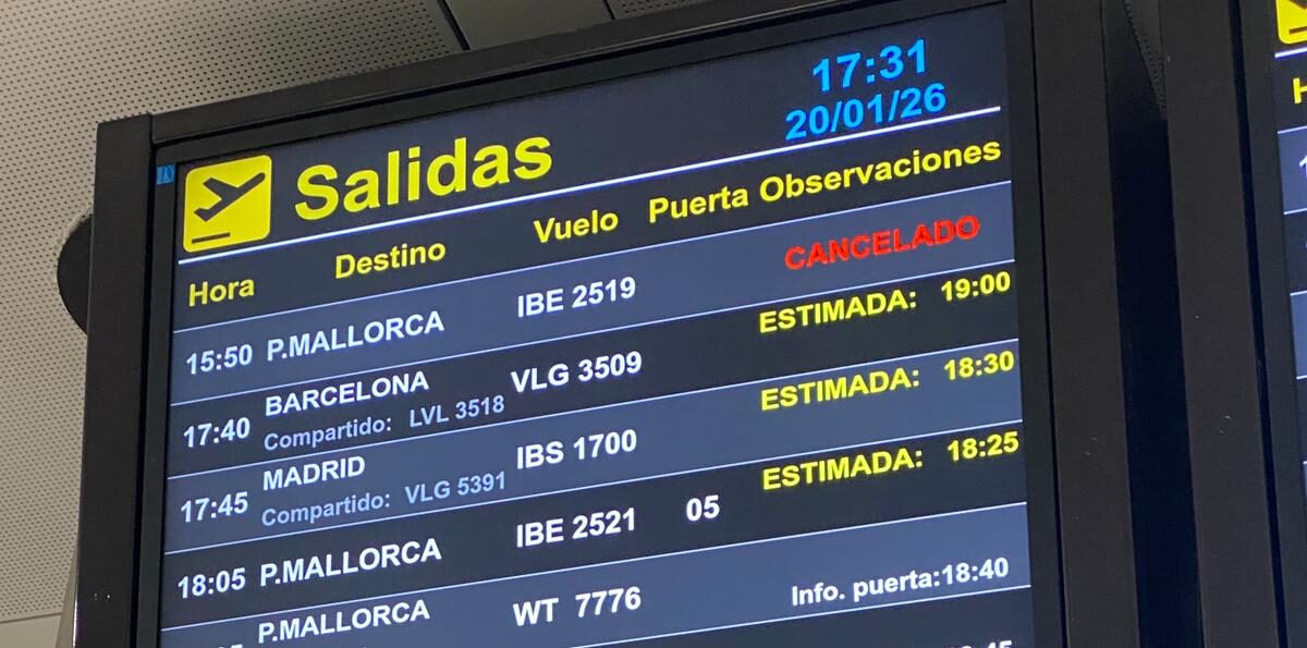 Vuelos cancelados y retrasados, ayer en el aeropuerto de Ibiza.
