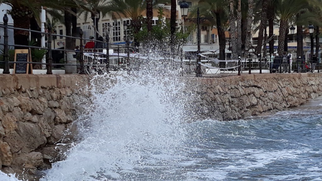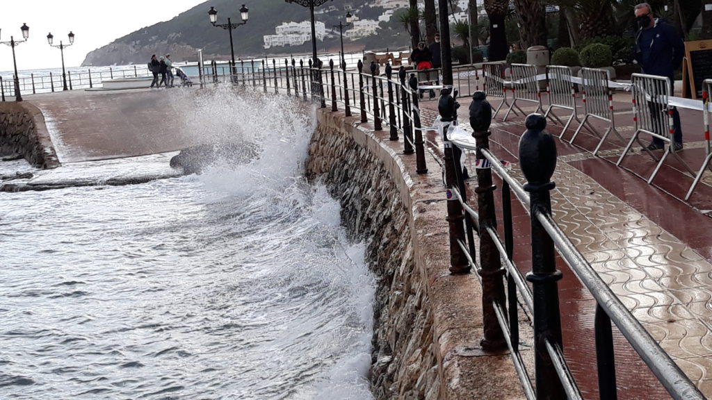 El temporal derriba un tramo de 10 metros de la barandilla del Paseo Marítimo de Santa Eulària