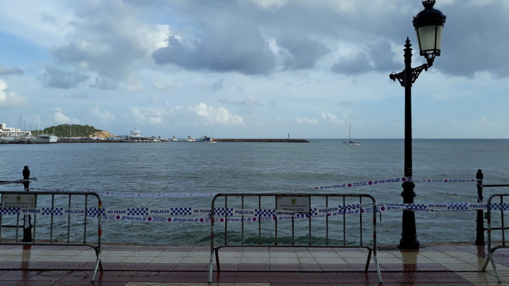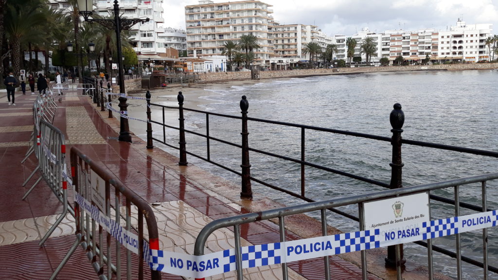NouDiari / La Policía Local de Santa Eulària ha vallado esta mañana una quincena de metros del Paseo Marítimo de la población de Santa Eulària después de que el último temporal haya derribado unos 10 metros de la barandilla metálica.