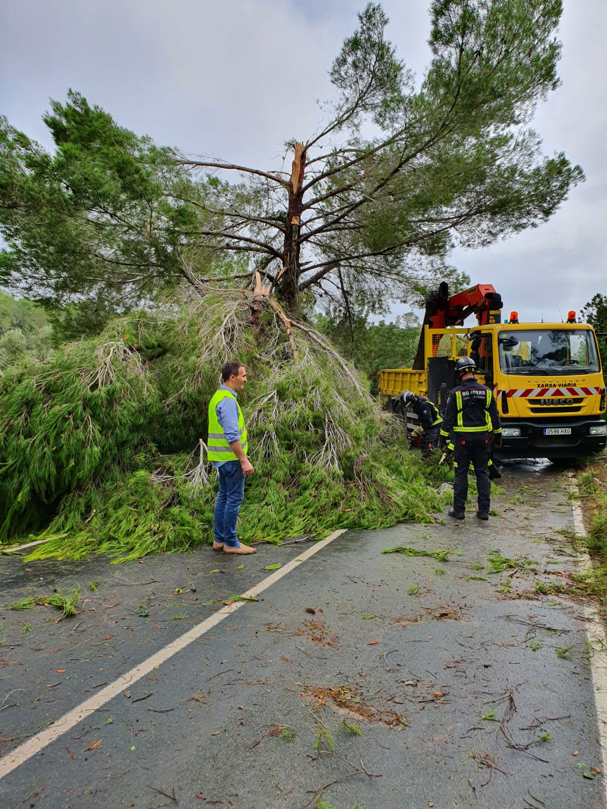 Los servicios de seguridad y emergencias han habilitado un puesto de mando en la zona de Can Coix donde están coordinando todos los trabajos para restaurar los desperfectos ocasionados por la tormenta. Además de la Policía Local, Protección Civil y la brigada de obras municipal, también está colaborando Ibanat, Guardia Civil, Bomberos y el servicio de Xarxa Viària del Consell de Eivissa, así como muchos voluntarios que están ayudando en la retirada de árboles.