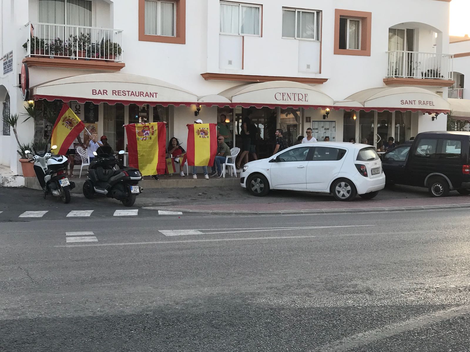 Por otro lado, alrededor de una decena de personas con banderas españolas se ha dado cita en Sant Rafel para mostrar su rechazo al encuentro. Una movilización que no ha tenido mucho éxito, pese a que se había difundido a través de las redes sociales en los últimos días.