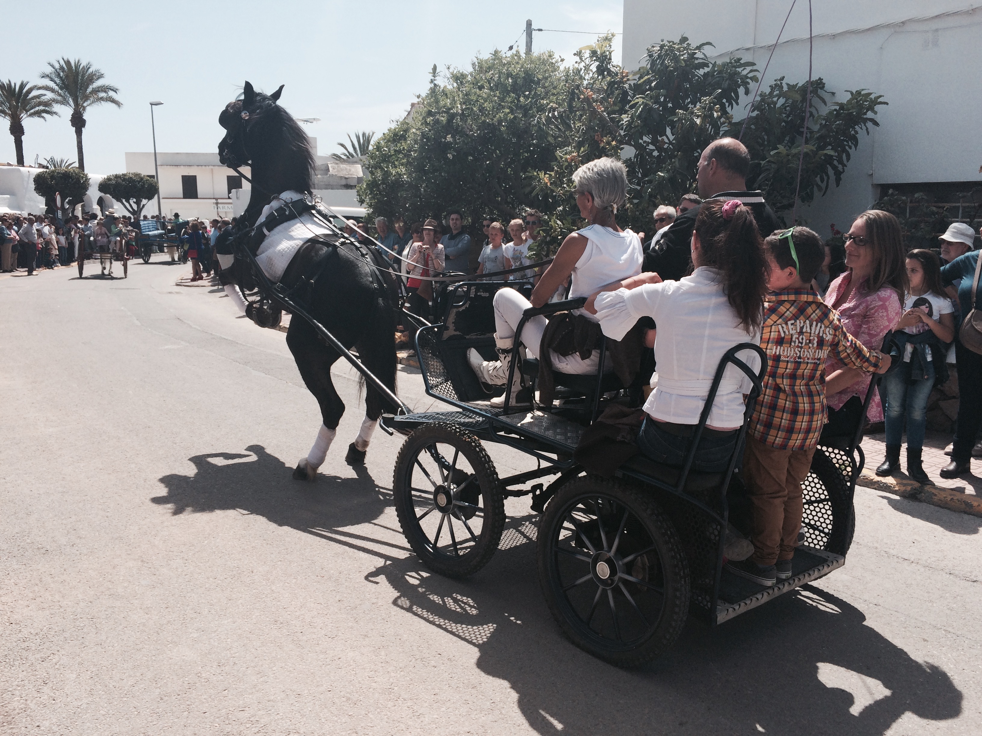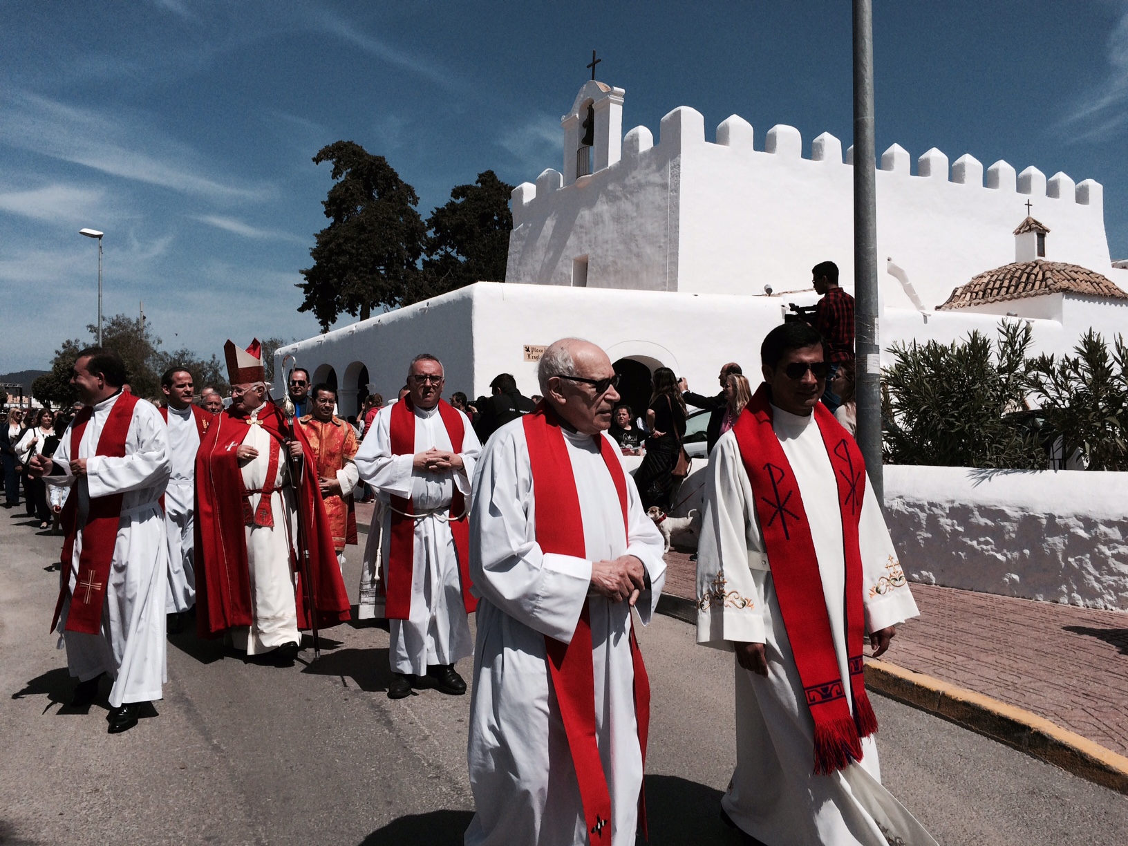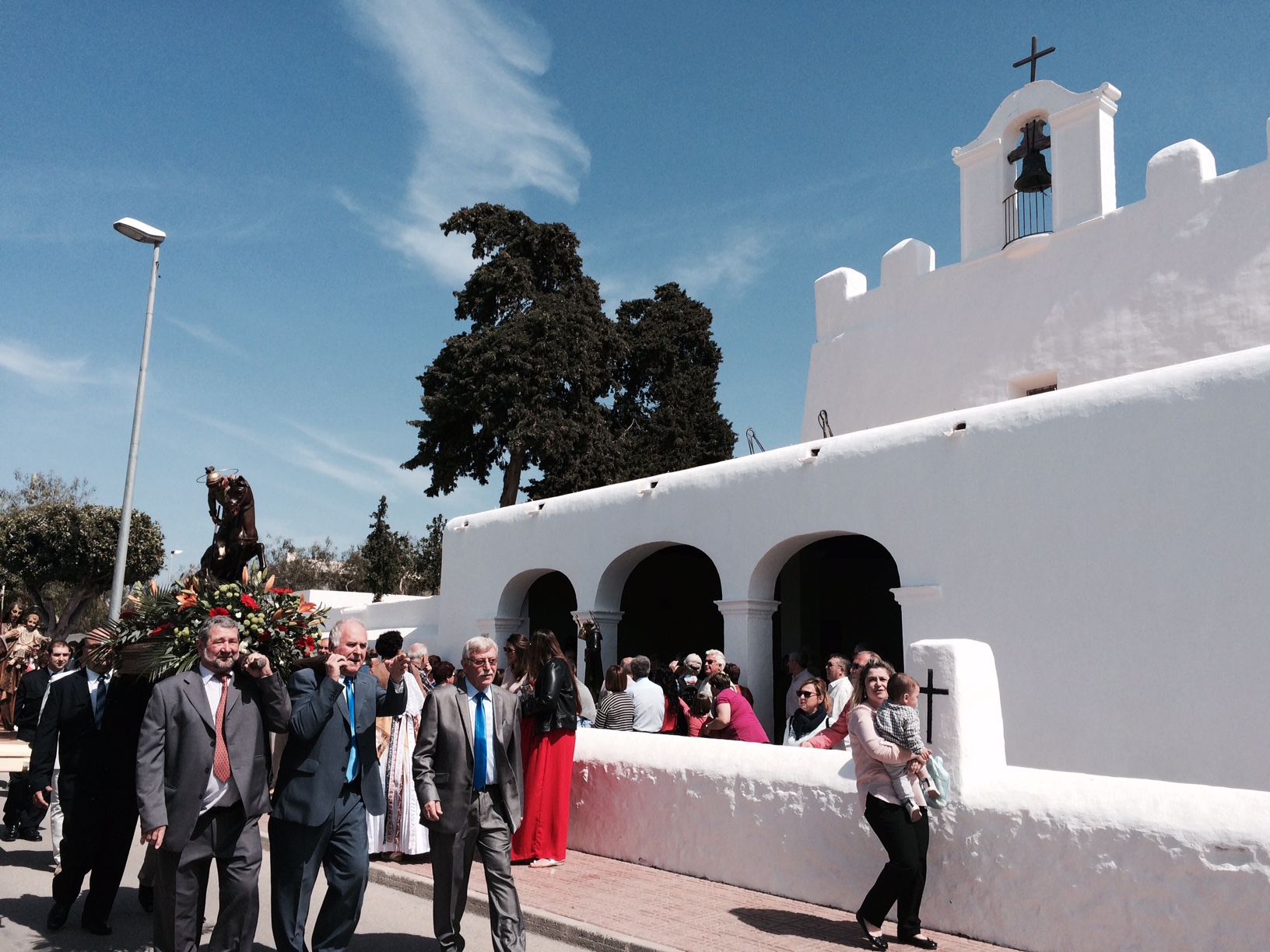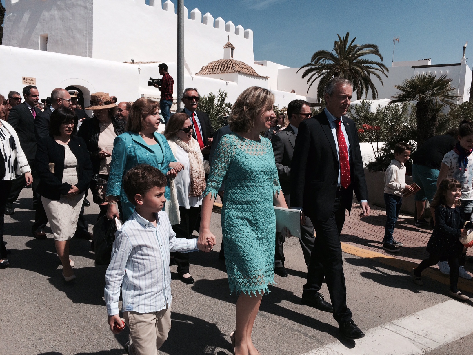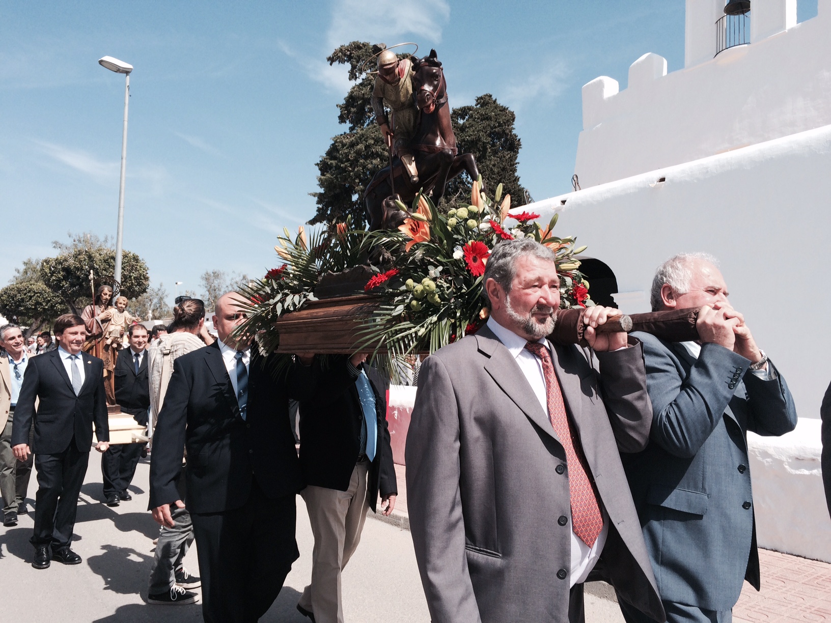 El día de Sant Jordi se ha convertido en la penúltima cita festiva (aún quedan las fiestas de Maig de Santa Eulària) antes de las elecciones. Y como muestra de esto, el gran número de representantes políticos que se han hecho hueco tanto en el interior de la iglesia como detrás de las imágenes para recorrer la localidad en procesión. Algunos, han apostado por encomendarse al santo directamente y han optado por cargar alguna de las imágenes. Ha sido el ejemplo de los concejales de Sant Josep, Javier Marí (PP), Vicent Torres (Alternativa Insular), Rafa Tur (ex PREF), que lució un traje claro que no pasó desapercibido, y Paco Ramon ‘Palleva’ (concejal del PSOE). El resto (Vicent Serra, la alcaldesa Neus Marí, los consellers Álex Michiotti y Vicent Roig, los candidatos socialistas Josep Marí Agustinet y Pilar Costa, el candidato de ERC, Josep Antoni Prats, la delegada de educación y candidata con el PP, Belén Torres, o la alcaldesa de Sant Antoni, Pepita Gutiérrez, entre otros) optaron por engrosar el grupo acompañante de la procesión bajo un sol abrasador y engalanados con traje y corbata, ellos.