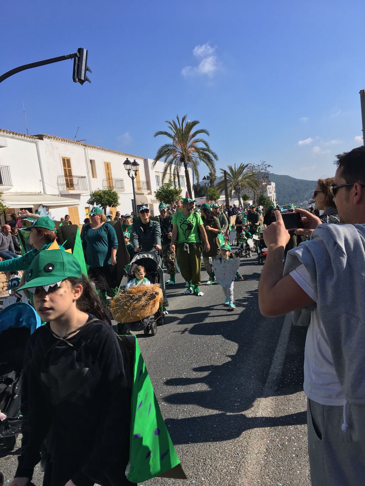 @Noudiari /Es Nostre Parc Natural de ses Salines, de la Apima del CEIP Sant Jordi, se ha hecho con el primer premio del Carnaval de Sant Josep, que se ha celebrado esta tarde después de haber tenido que ser pospuesto el pasado sábado como consecuencia del mal tiempo.