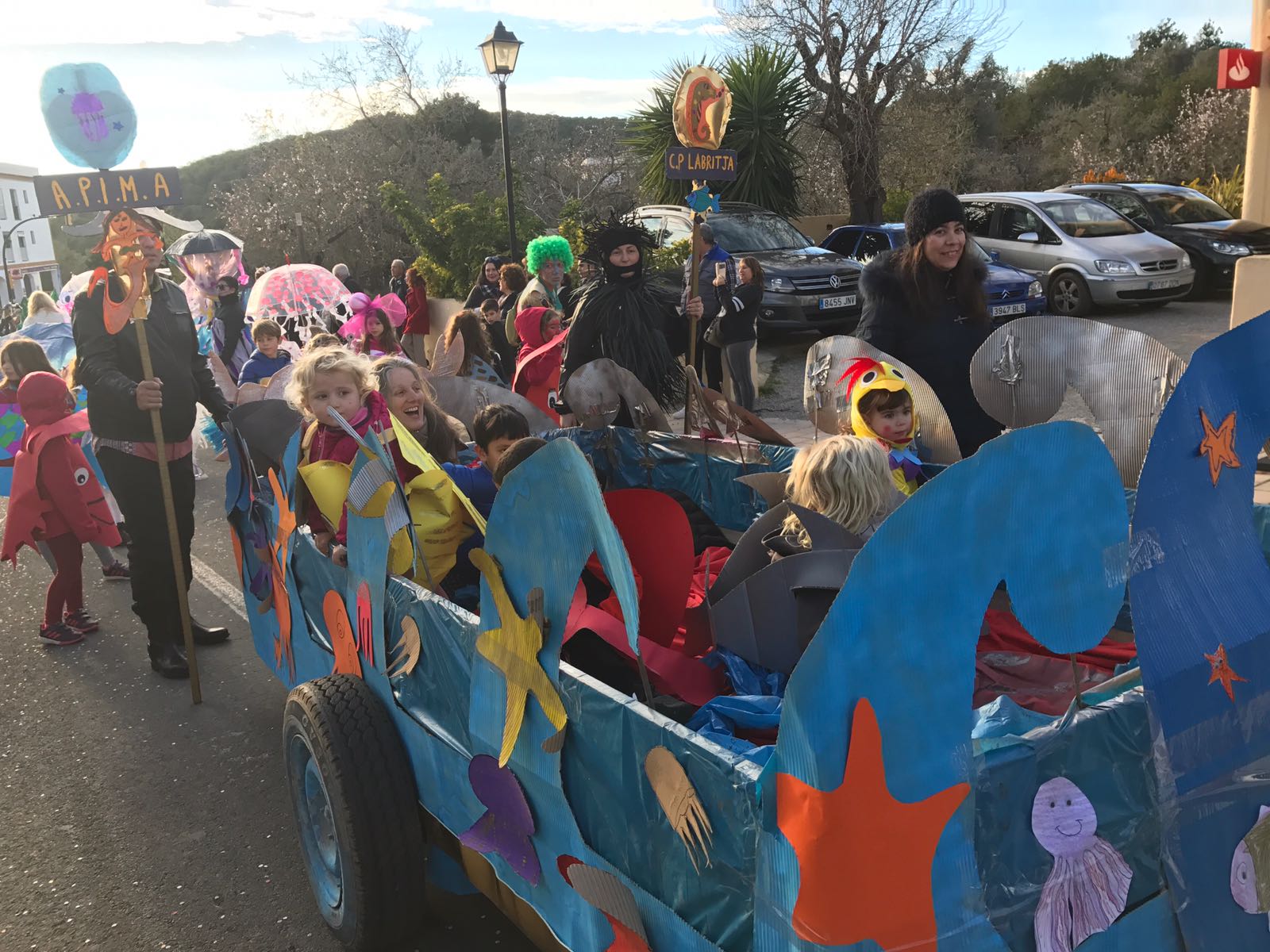 @Noudiari / Escuma Marina ha triunfado esta tarde en Sant Joan como la mejor carroza del Carnaval de 2018 de Labritja y se ha llevado el primer premio de la rúa por delante de la Apima de Balansat (Súper Héroes) u Cursa por una Vivenda Digna, que han sido segundo y tercero en esta categoría.