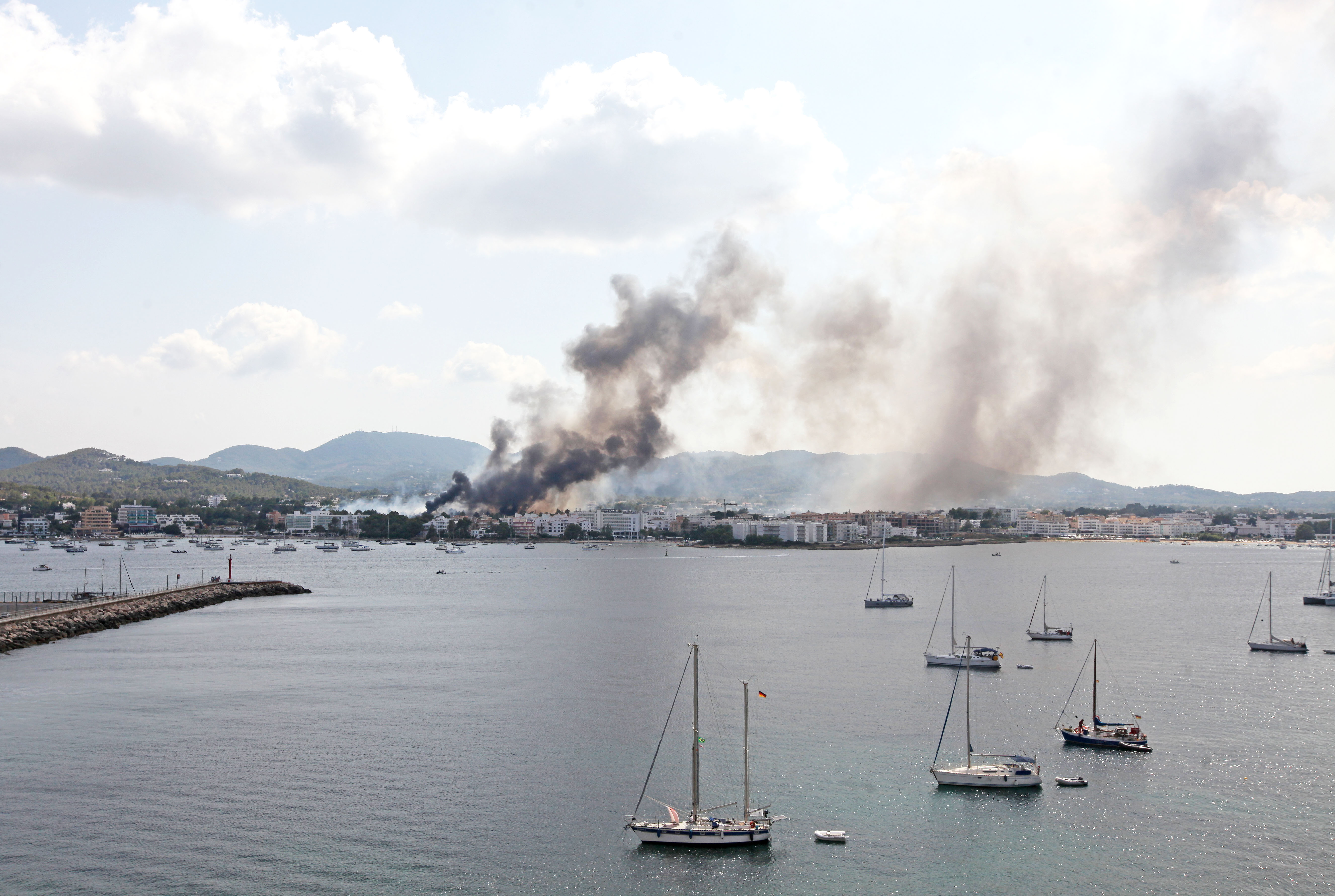 La espesa columna de humo provocada por el incendio era visible desde diferentes puntos de la isla y ha creado una gran alarma en el pueblo de Sant Antoni, así como en una buena parte de Sant Josep. Sin embargo, la rápida y precisa actuaciones de los medios terrestres y aéreos ha conseguido frenar con celeridad el avance de las llamas.