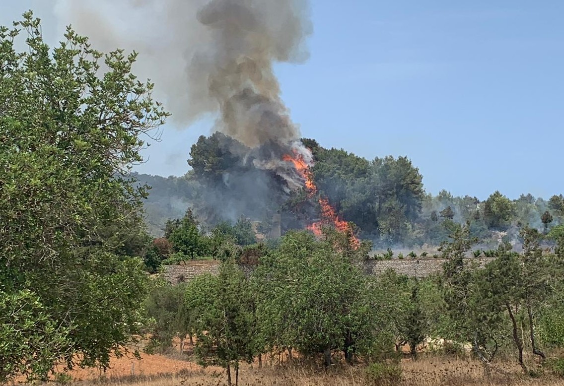 @Noudiari / El incendio que se ha declarado sobre las dos de la tarde de este sábado en el municipio ibicenco de Sant Joan ha quedado controlado después de quemar 0,5 hectáreas de pinar y 1,5 de terreno en total.