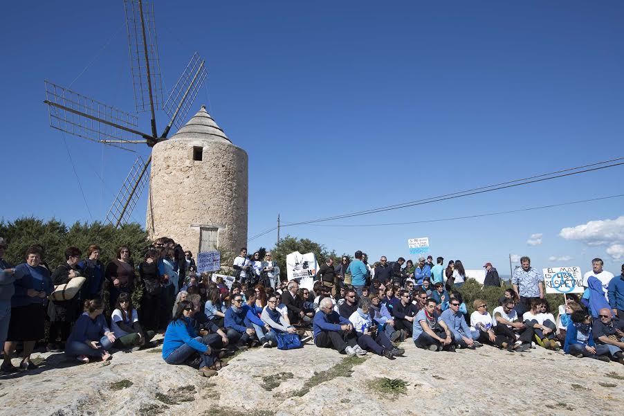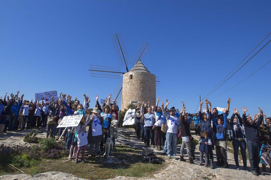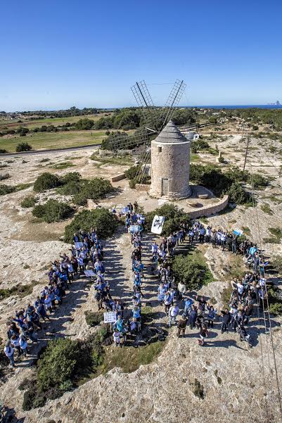 @D.V./ Unas 400 personas se han concentrado este mediodía en Formentera convocados por Radio Illa antes de partir hacia Eivissa para participar en la masiva manifestación contra las prospecciones petrolíferas. El encuentro se ha producido en la plaza de la Constitució de Sant Francesc pero antes han aprovechado para concentrarse frente al emblemático molino del pueblo para dibujar un ‘No’ con sus cuerpos.