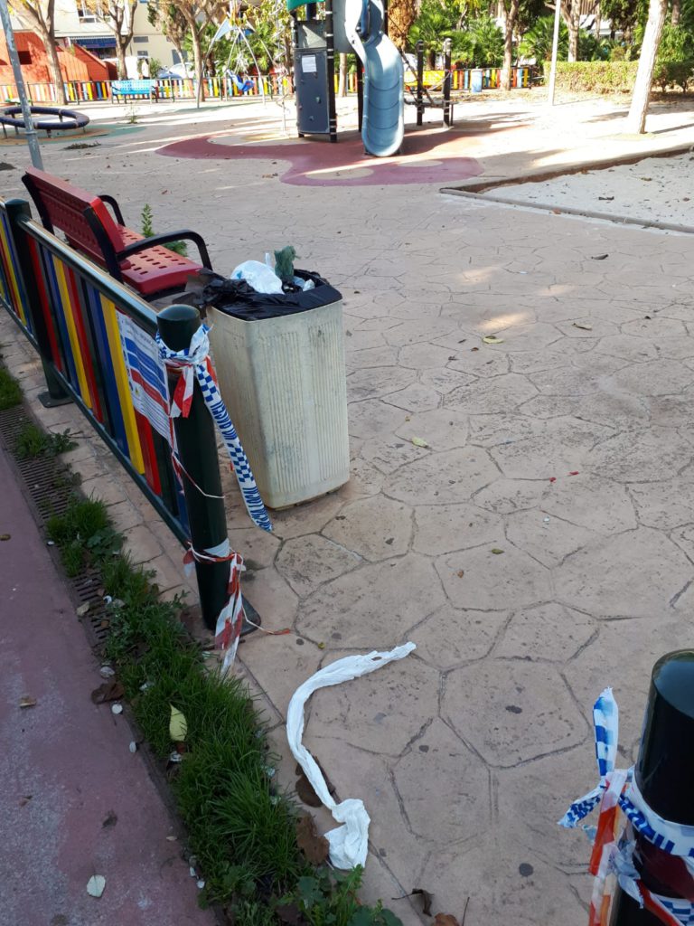 A pesar de que está prohibido usar los parques durante la pandemia, la denunciante nos informa, además, de que había personas sentadas en los bancos, fumando y bebiendo.
