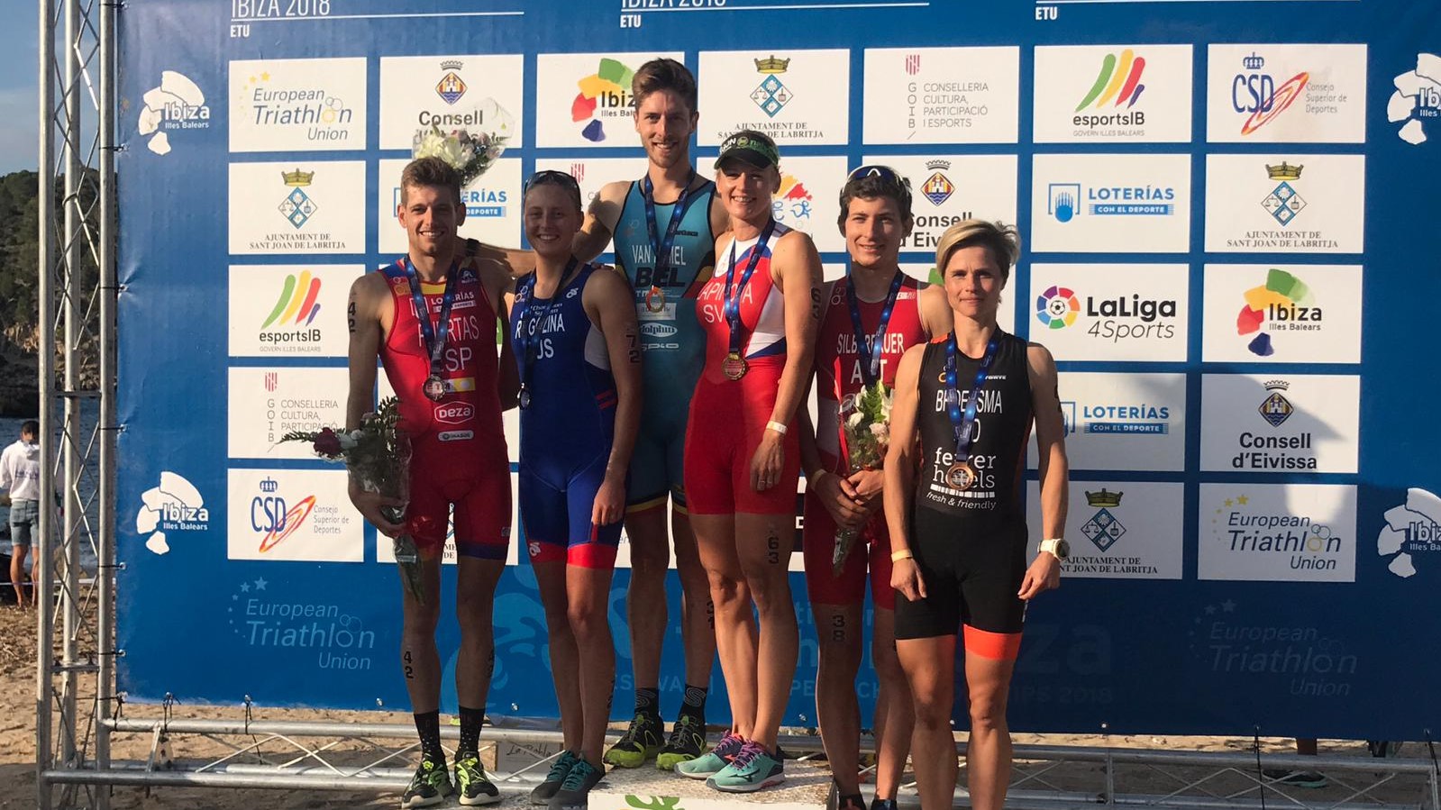 @Noudiari / El belga Tim Van Hemel y la eslovaca Kristina Lapinova se han proclamado campeones de Europa de duatlón-cross en la prueba celebrada en el idílico entorno del Port Sant Miquel. Ha sido el segundo de los seis campeonatos de Europa que forman parte del programa de Ibiza Multisport 2018. La carrera fue dominada por Van Hemel de principio a fin. El belga fue distanciándose de sus rivales en el primer tramo a pie, mantuvo una cómoda ventaja durante el sector en bicicleta de montaña y nadie pudo alcanzarle en el último esfuerzo sobre las zapatillas.
