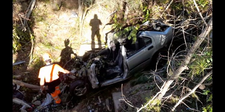 El vehículo ha recorrido 120 metros campo a través después de salirse de la vía y ha chocado contra varios árboles antes de caer al torrente, donde se ha detenido, prácticamente destrozado, como se aprecia en la imagen que acompaña estas líneas.