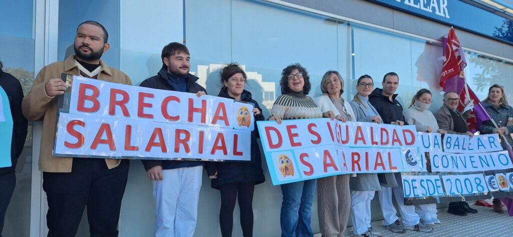 Los huelguistas han coreado villancicos con la letra cambiada, con estribillos como «ande ande ande, la Mutua no paga, ande ande ande porque no le da la gana». También han mostrado pancartas con mensajes como ‘¿Mi complemento pa’cuando?’ o ‘Mutua Balear sin convenio desde 2008’.