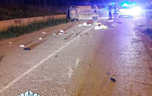 El accidente se produjo en un tramo de la carretera que va a sa Caleta, y después del primer impacto, el coche, un Renault Clio blanco, recorrió una distancia de 40 metros hasta detenerse con las ruedas hacia arriba. Dos ambulancias trasladaron a la mujer y el niño al hospital para ser tratados de las heridas superficiales, magulladuras y golpes ocasionados a causa del siniestro.