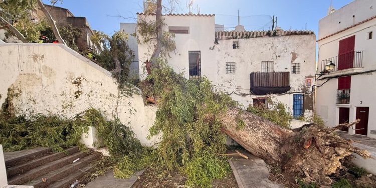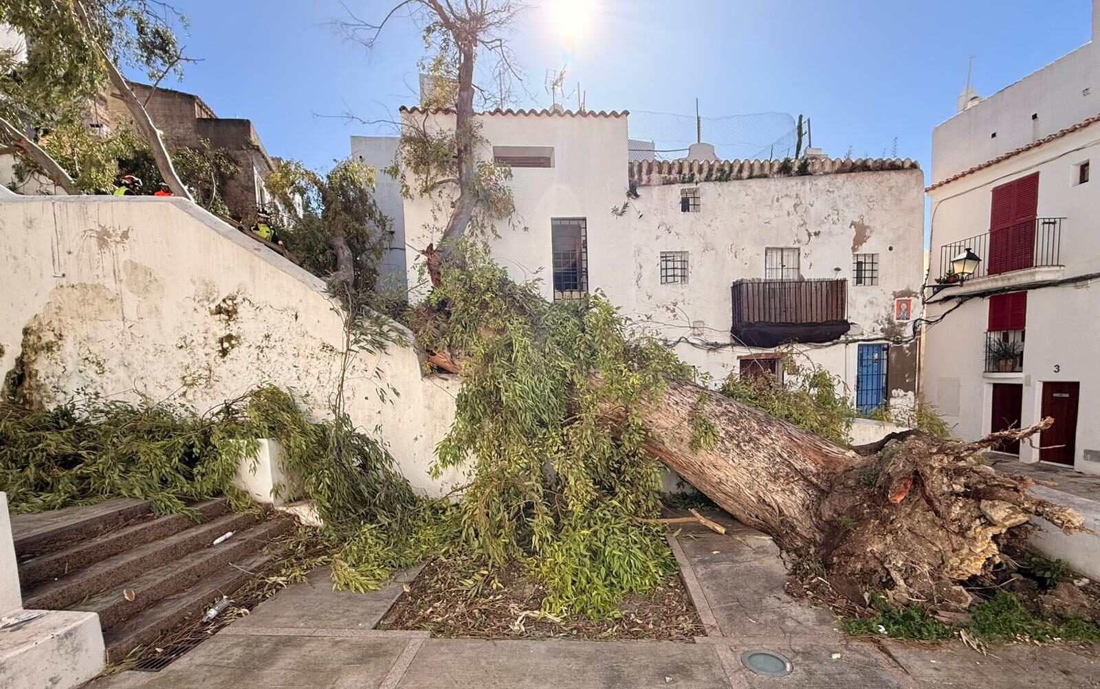 Árbol derribado en Sa Penya el 12 de febrero, uno de los más duros por los vientos de las sucesivas borrascas. Foto Ayto. Ibiza