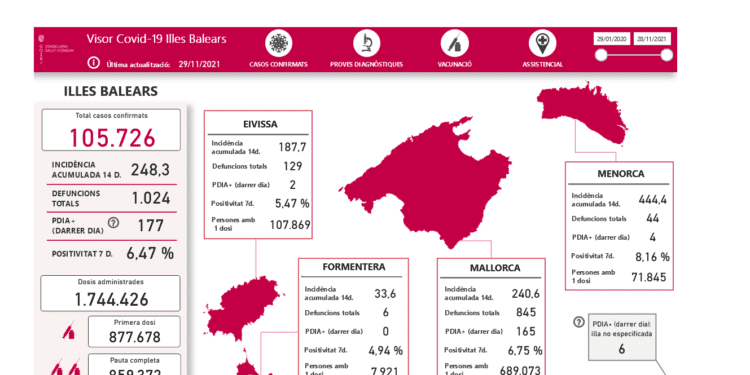 La incidencia acumulada continúa aumentado en la isla de Ibiza hasta los 187 casos por 100.000 habitantes.