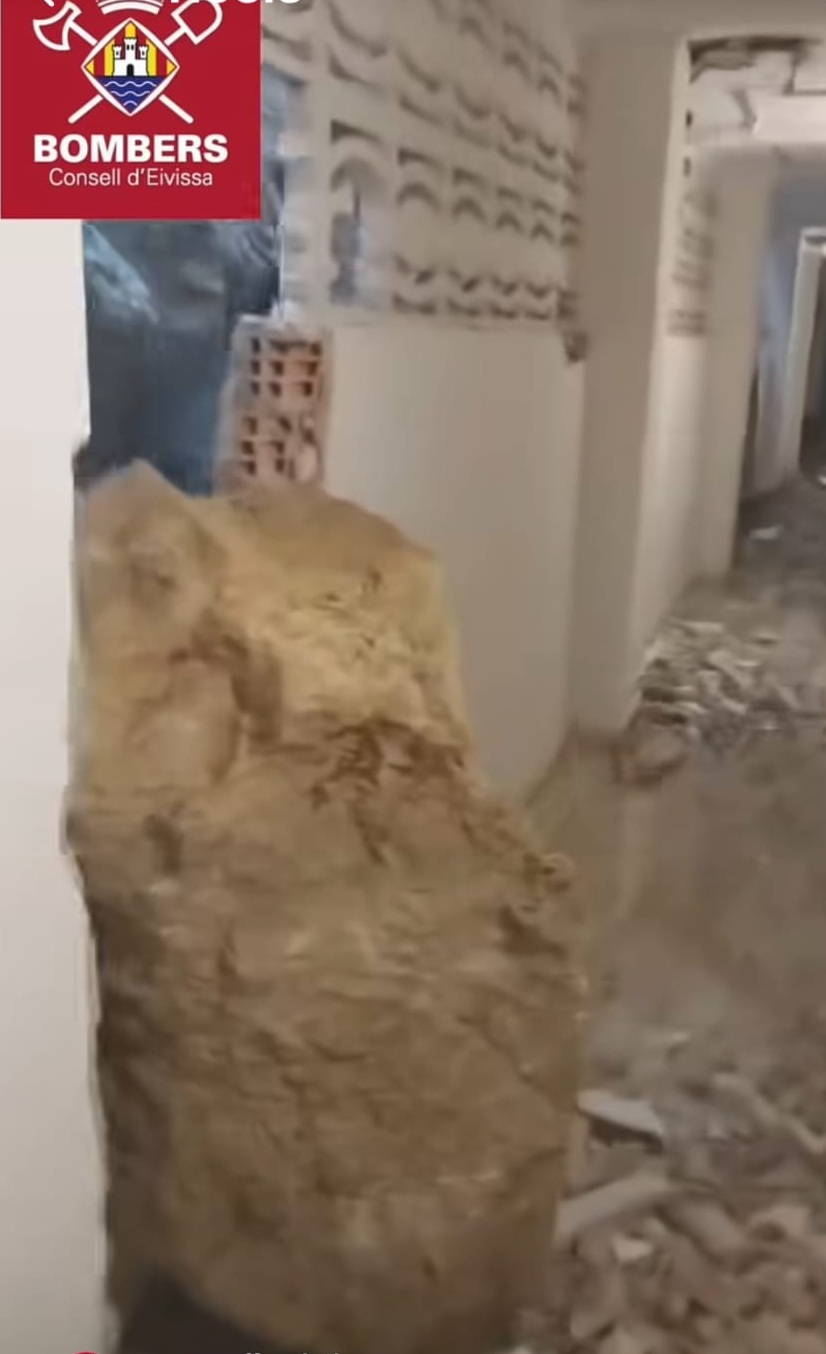 El Consell de Eivissa y el cuerpo insular de Bomberos han compartido unas imágenes en sus redes sociales en las que se ve la actuación que realizaron el pasado martes por la tarde en el hotel Vibra Tropical Garden, después de que un desprendimiento de rocas provocara heridas a dos personas.