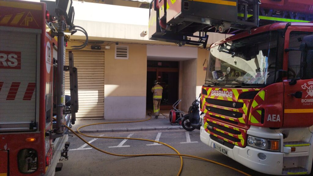 V. R / L. F. A / Dos mujeres han resultado heridas leves por inhalación de humo en el incendio declarado este martes, 21 de octubre, sobre las 13.45 horas en una vivienda del Carrer del Bisbe Abad y Lasierra número 50, en pleno centro de Ibiza. Una de ellas, no obstante, ha sido trasladada al hospital Can Misses, tal y como ha informado en el lugar de los hechos el cabo de los bomberos al mando del operativo.