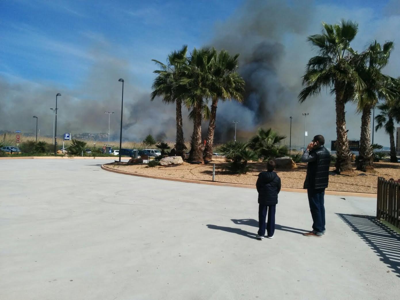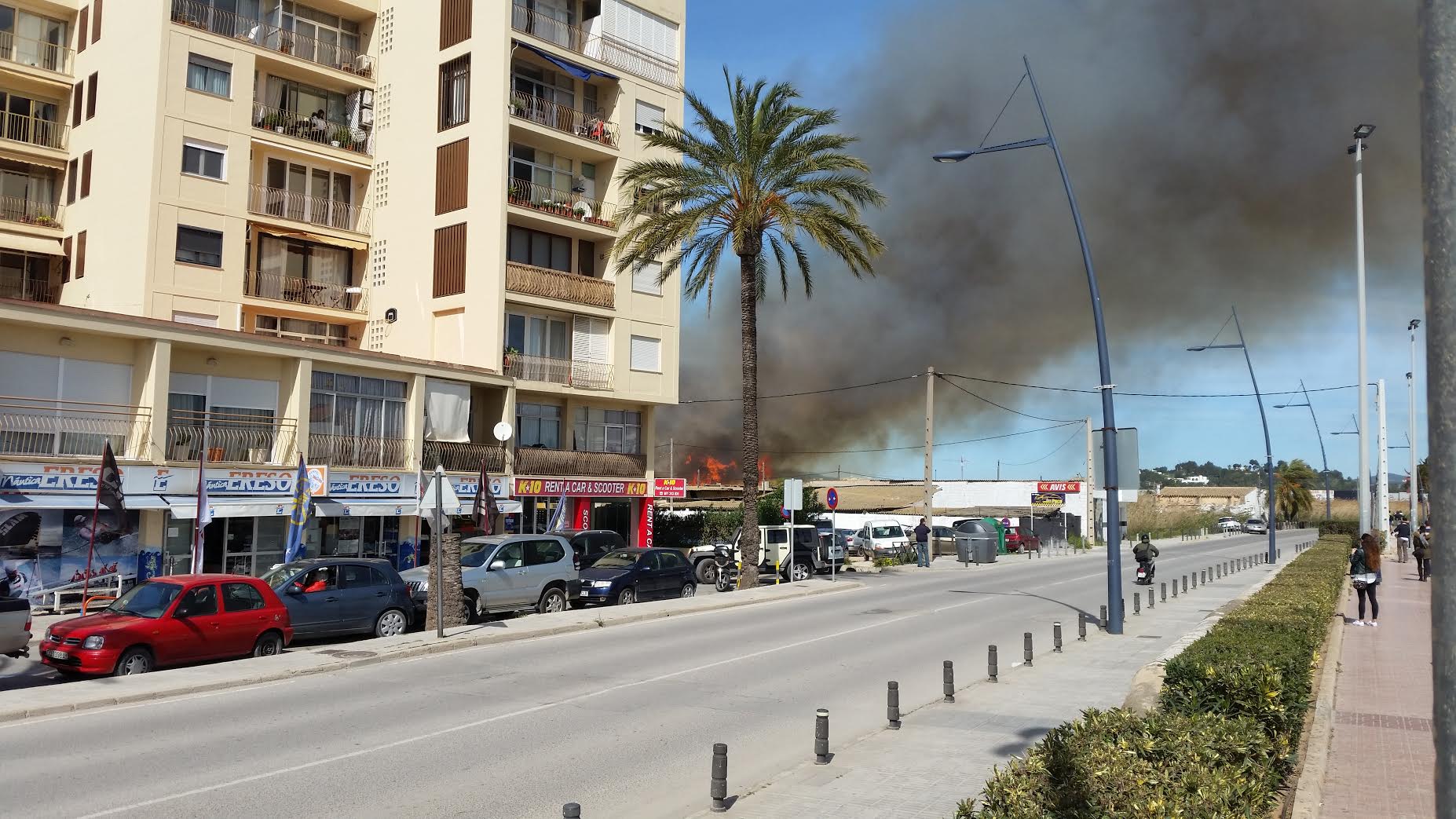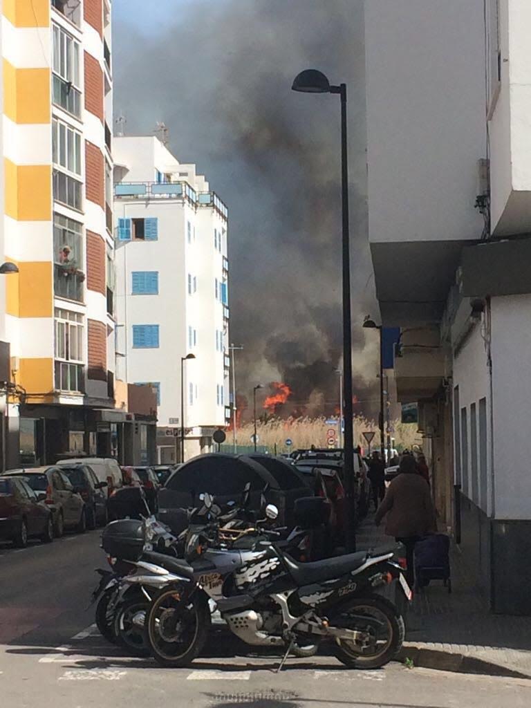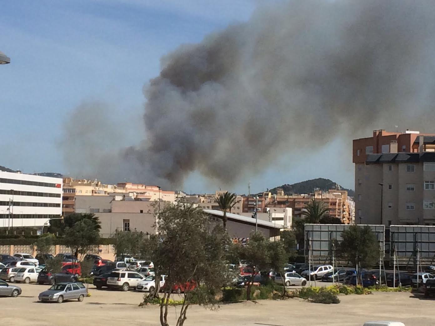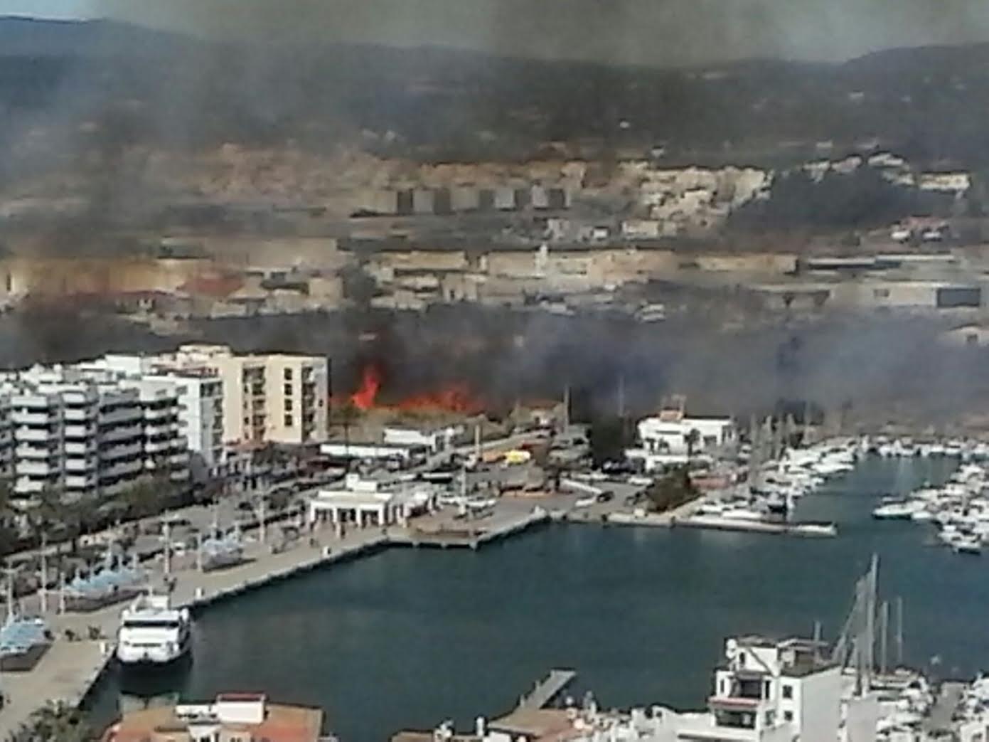 La gran humareda se puede ver desde varios kilómetros de Vila. Las llamas, que se están acercando hacia la Avinguda de Santa Eulària, son visibles desde el Club Náutico.
