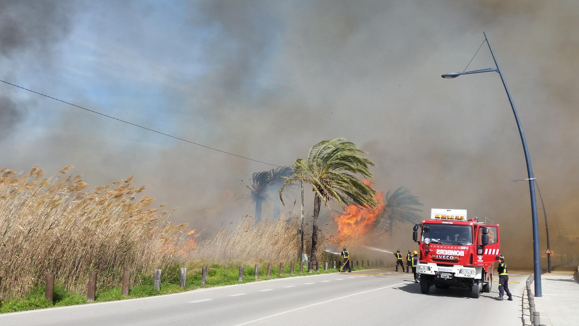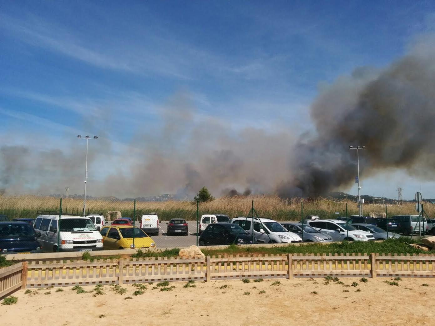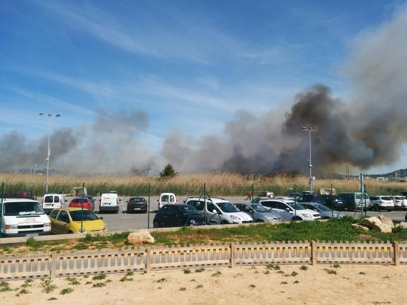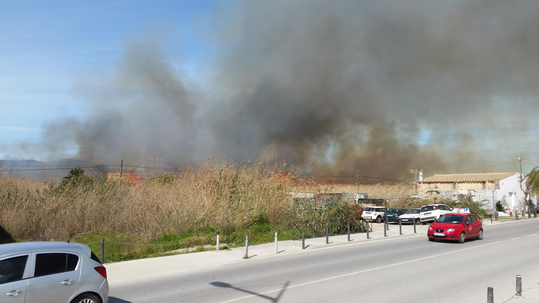 La gran humareda se puede ver desde varios kilómetros de Vila. Las llamas, que se están acercando hacia la Avinguda de Santa Eulària, son visibles desde el Club Náutico.