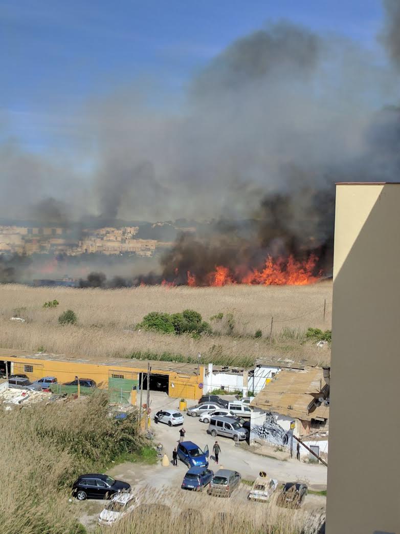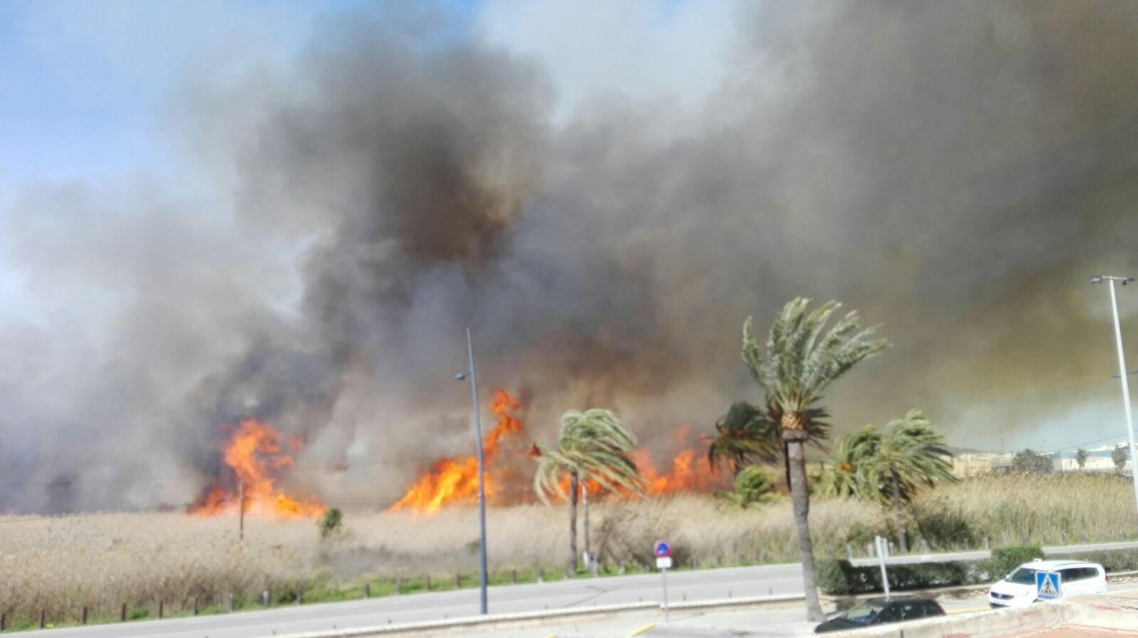 @Noudiari/ Un incendio está arrasando a estas horas ses Feixes des Prat de Vila, frente al Club Náutico de Eivissa.