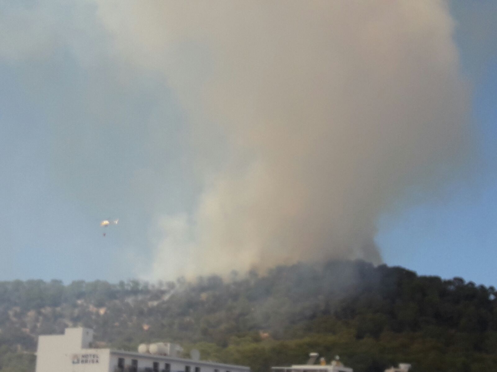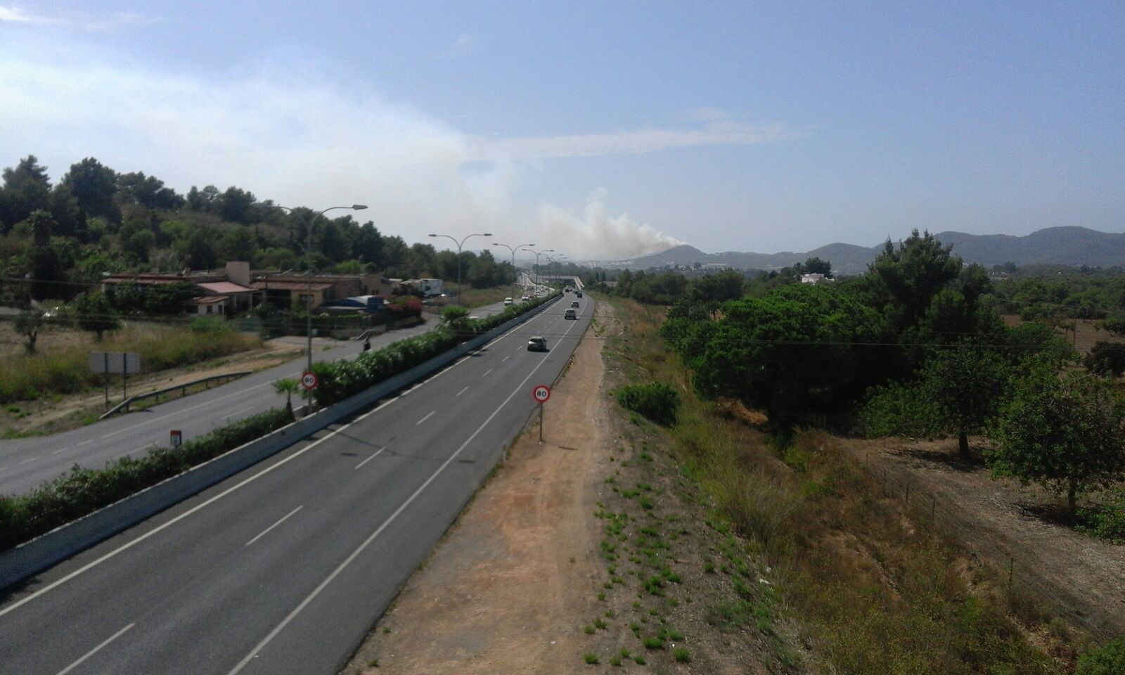 La columna de humo también es visible desde la carretera de Sant Antoni.
