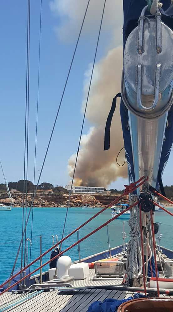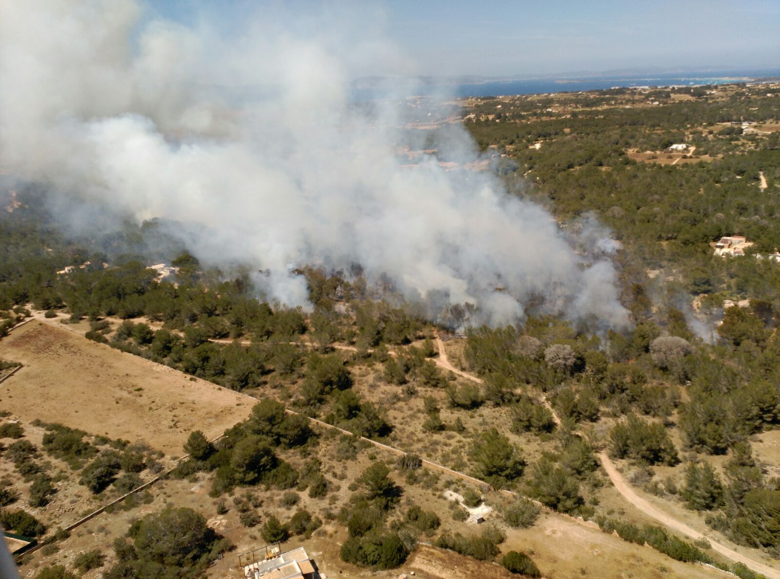 Desde Ibanat han apuntado que están de camino dos aviones anfibios de Torrejón. En estos momentos están actuando cuatro brigadas, 2 tecnicos, dos agentes de Medi Ambient, una autobomba y los bomberos de Formentera.