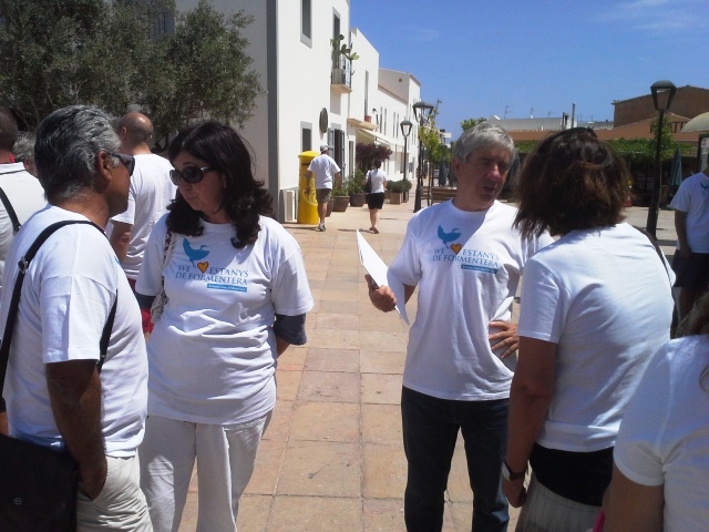 Un grupo de vecinos se reunieron este domingo en la Plaza de la Constitució para reclamar la conservación de los estanys de Formentera. Fotos: G. R.