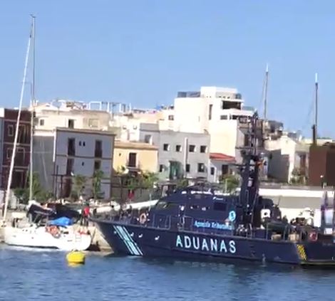 @Noudiari / EFE / Patrullas del Servicio de Vigilancia Aduanera (SVA) han abordado este martes en alta mar un velero con cerca de 5.000 kilos de hachís repartidos en 150 fardos, que están siendo descargados esta mañana en el puerto de Ibiza.