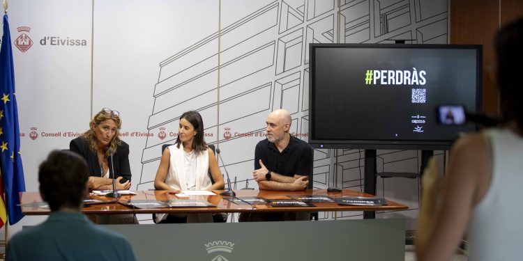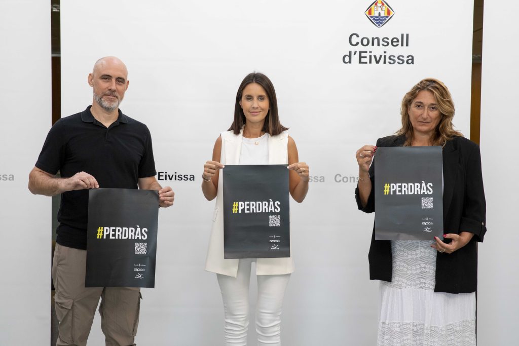 La consellera insular Maria Fajarnés, junto con la coordinadora del CEPCA, Belén Alvite, y el profesor de Bachillerato Artístico del Institut Quartó de Portmany, Manolo Matoses, han presentado hoy la campaña #Perderás #Perdràs, con el objetivo de informar y sensibilizar a la población en general y a los menores de edad y gente joven en particular, sobre los riesgos que comportan los juegos de azar